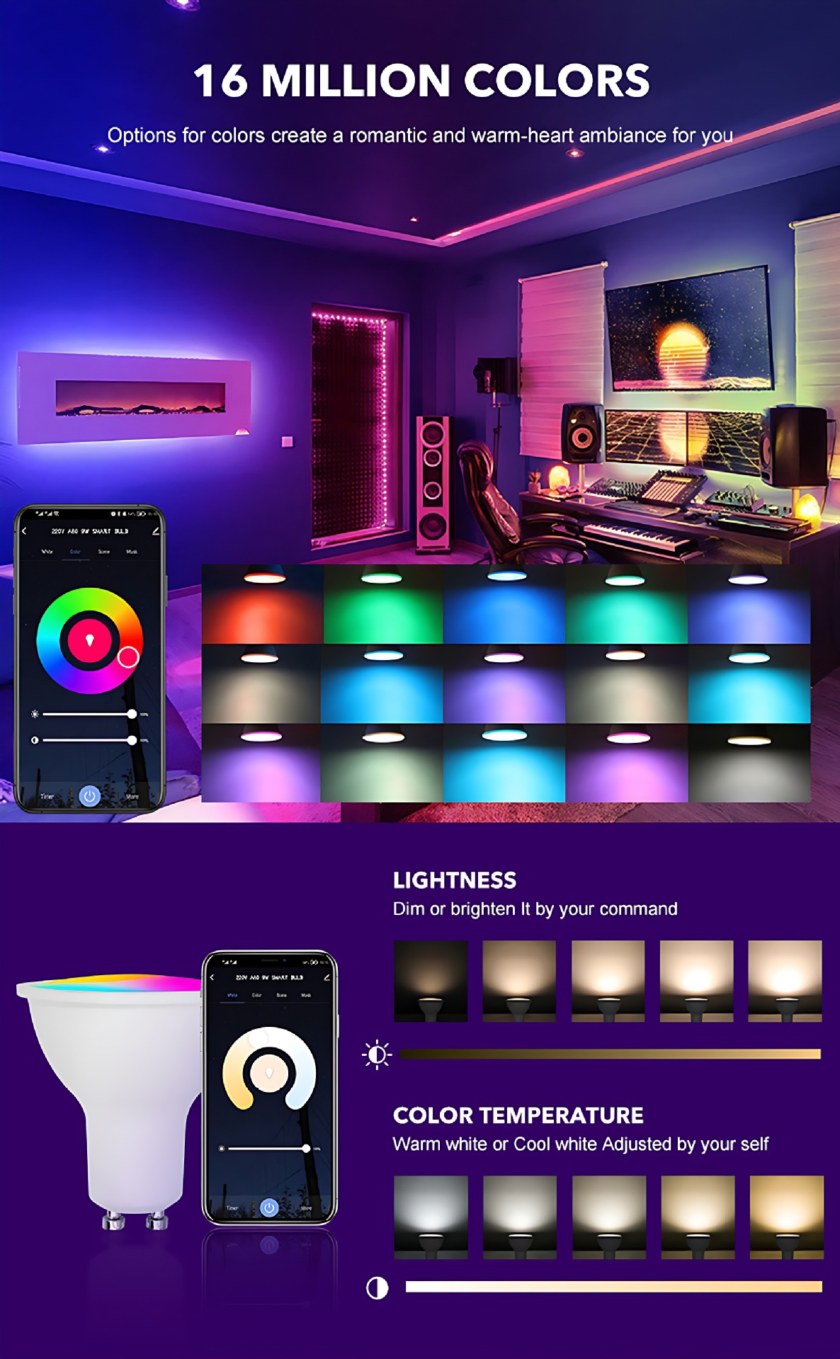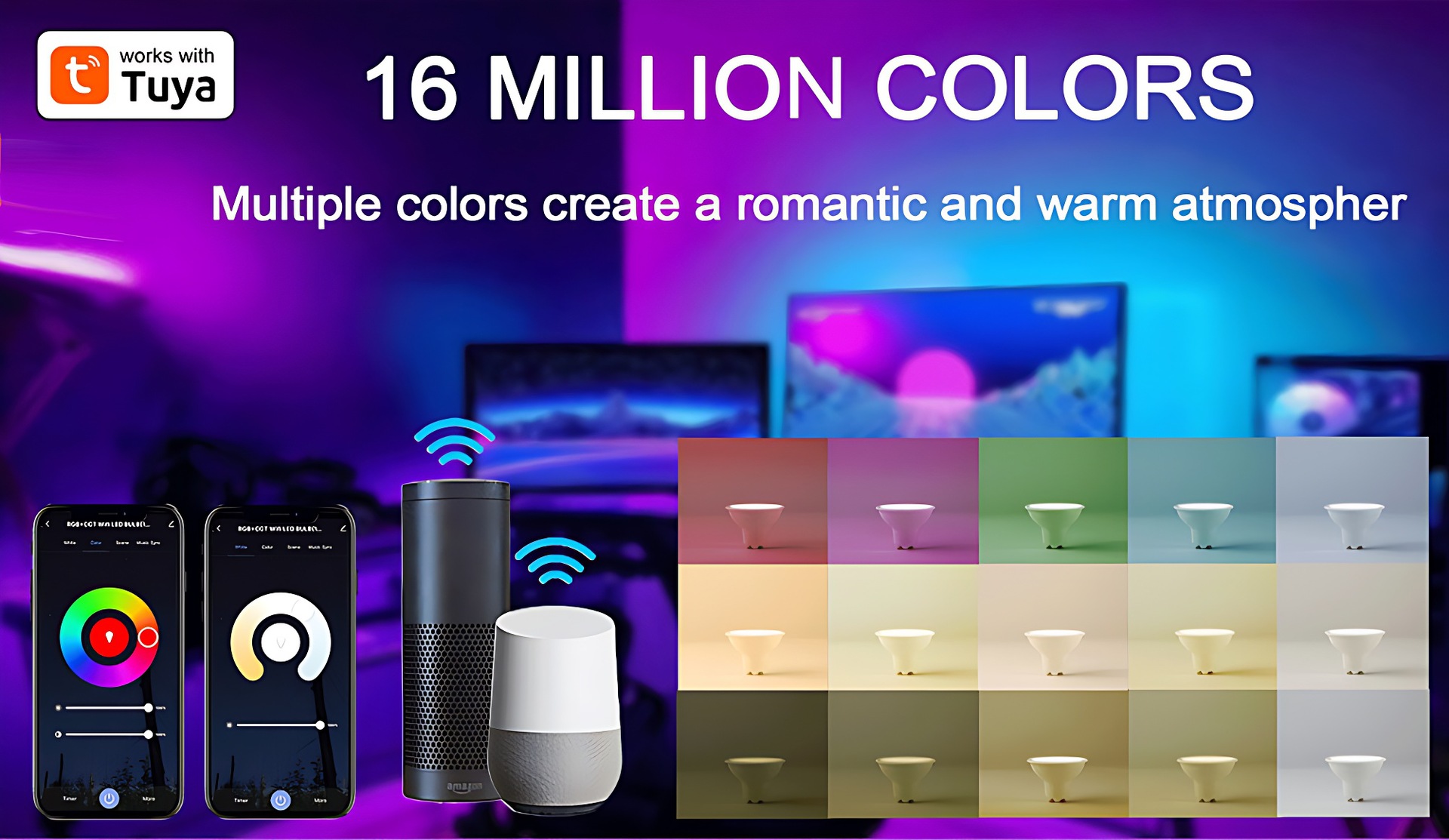 支持Alexa,google home,天猫精灵,小度等智能音箱语音控制,量大价格越优惠,质量有保证。远程手机app控制,定时,调光调色1600万种颜色随便调节。带记忆功能,还有带情景模式。