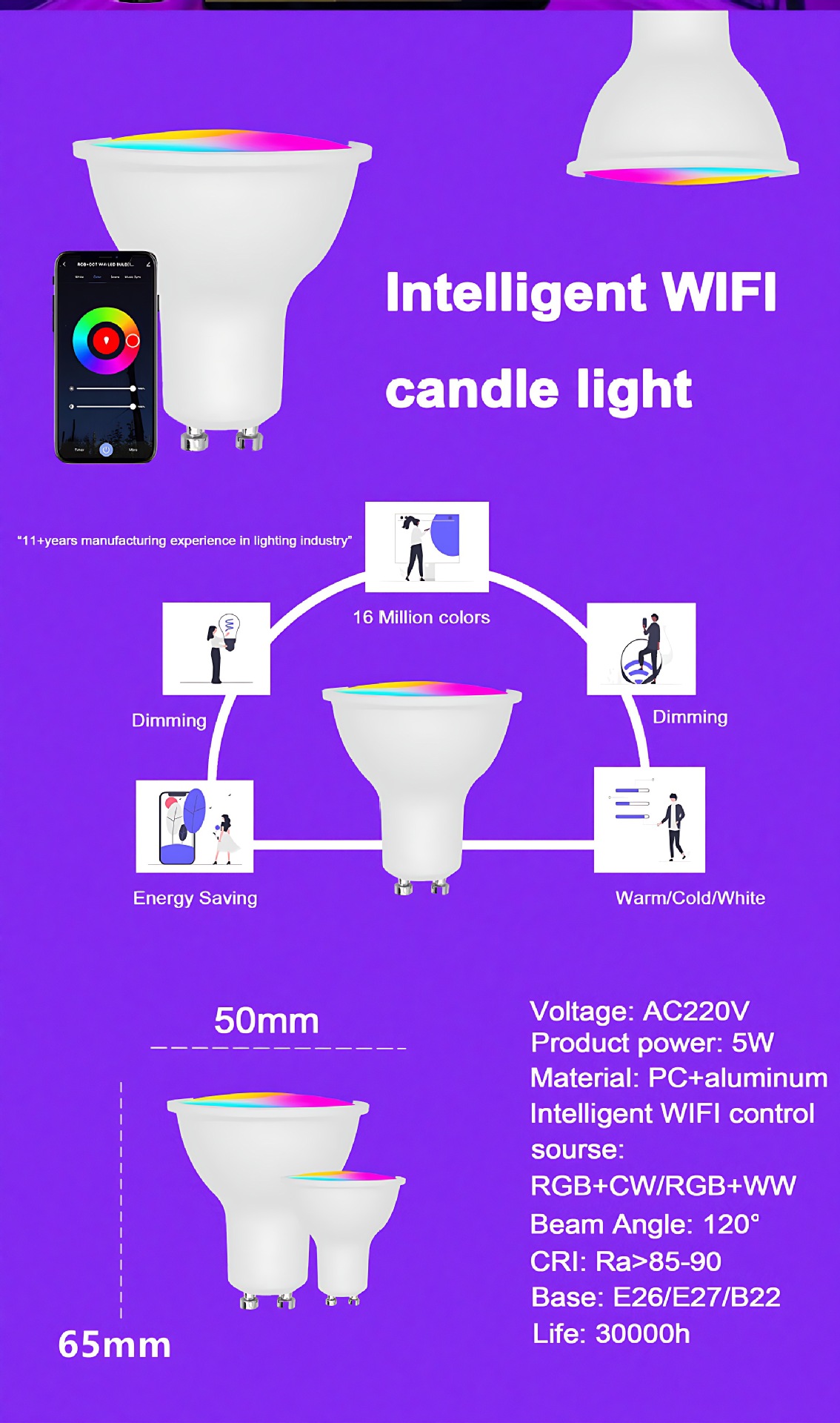 Умная лампочка Tuya Wifi Gu10 диммируемая точечная лампа поддерживает Alexa производитель энергосберегающая Bluetooth точечная лампа