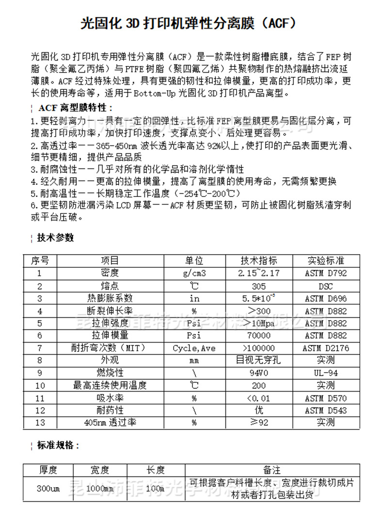 Пленка для выпуска 3D-принтера ACF, без звука при выпуске, высокая степень успеха, эластичная разделительная пленка TCF