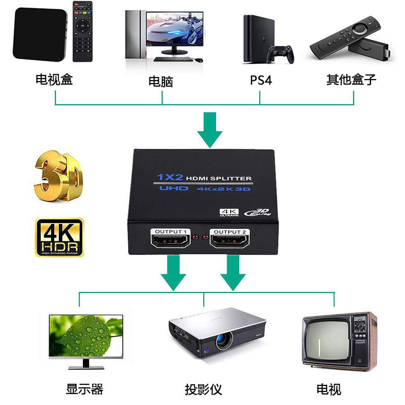 4K HD видео HDMI сплиттер 1 в 2 компьютер видеорегистратор ТВ приставка дисплей сплиттер 1 в 2