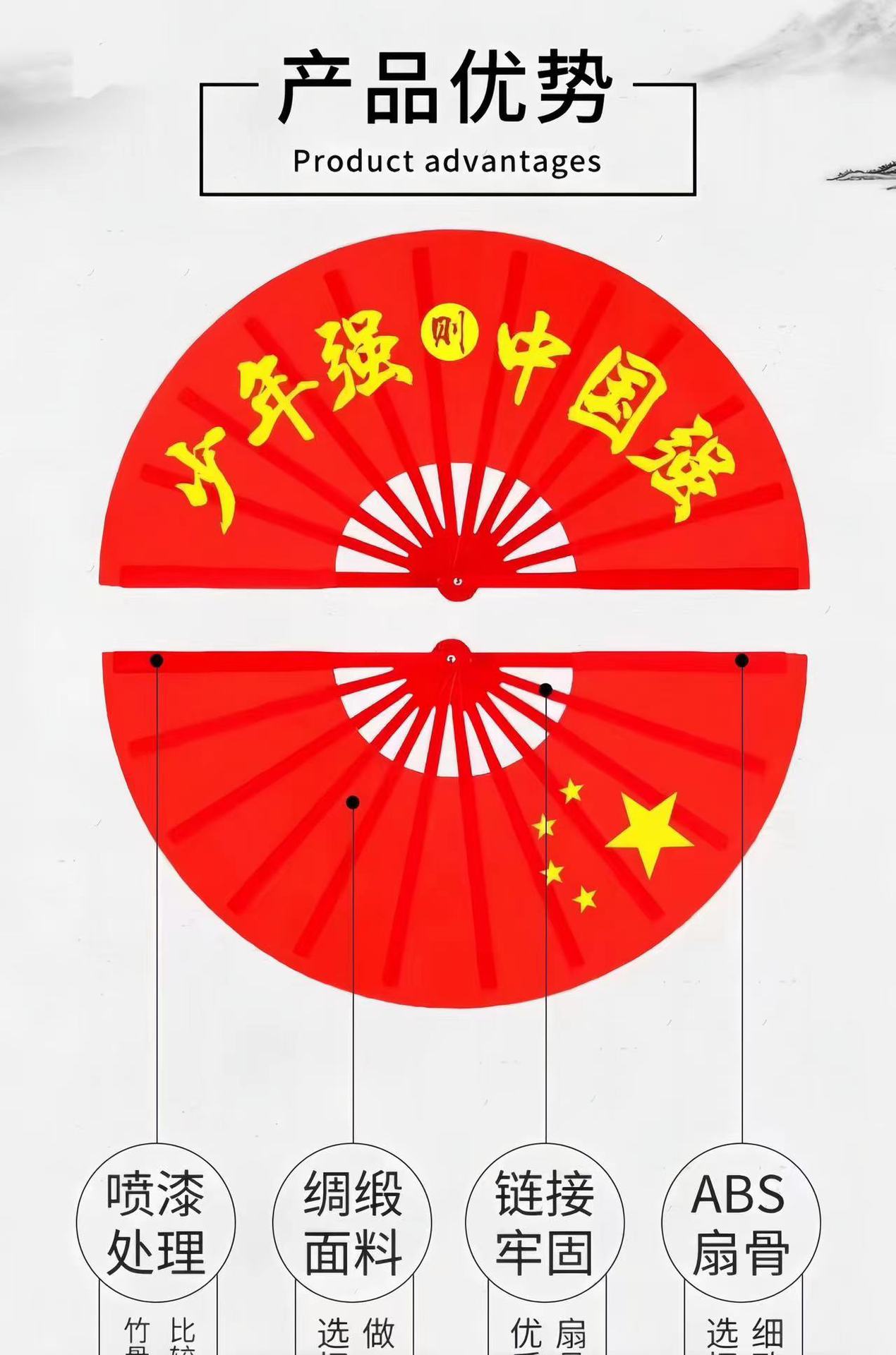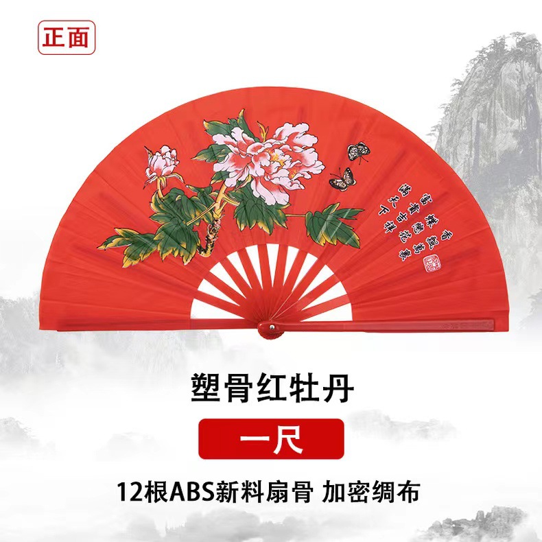 Веер тайцзи, кунг-фу, красный, для выступлений, громкий звук