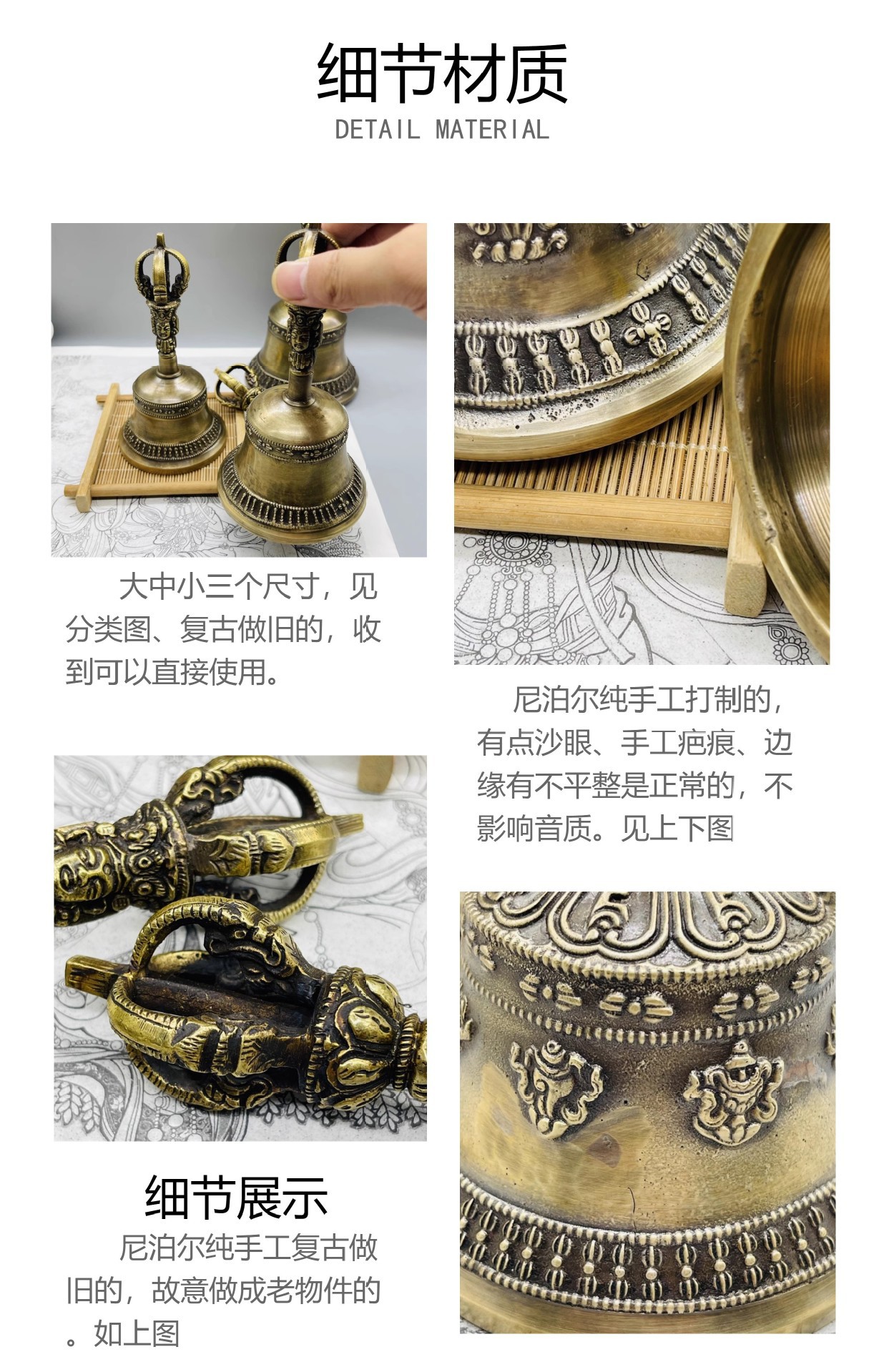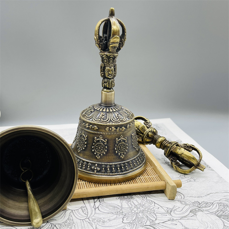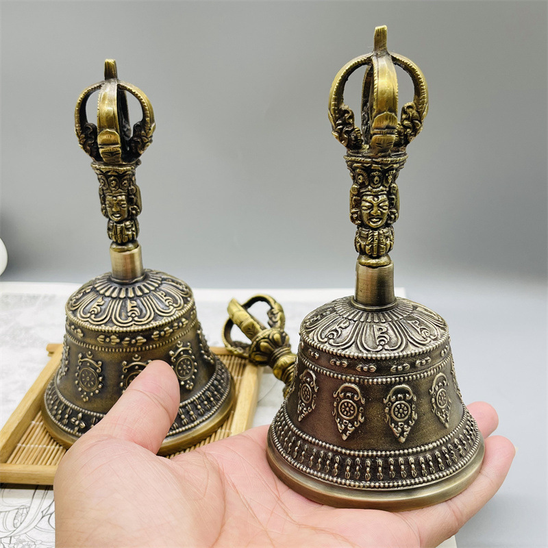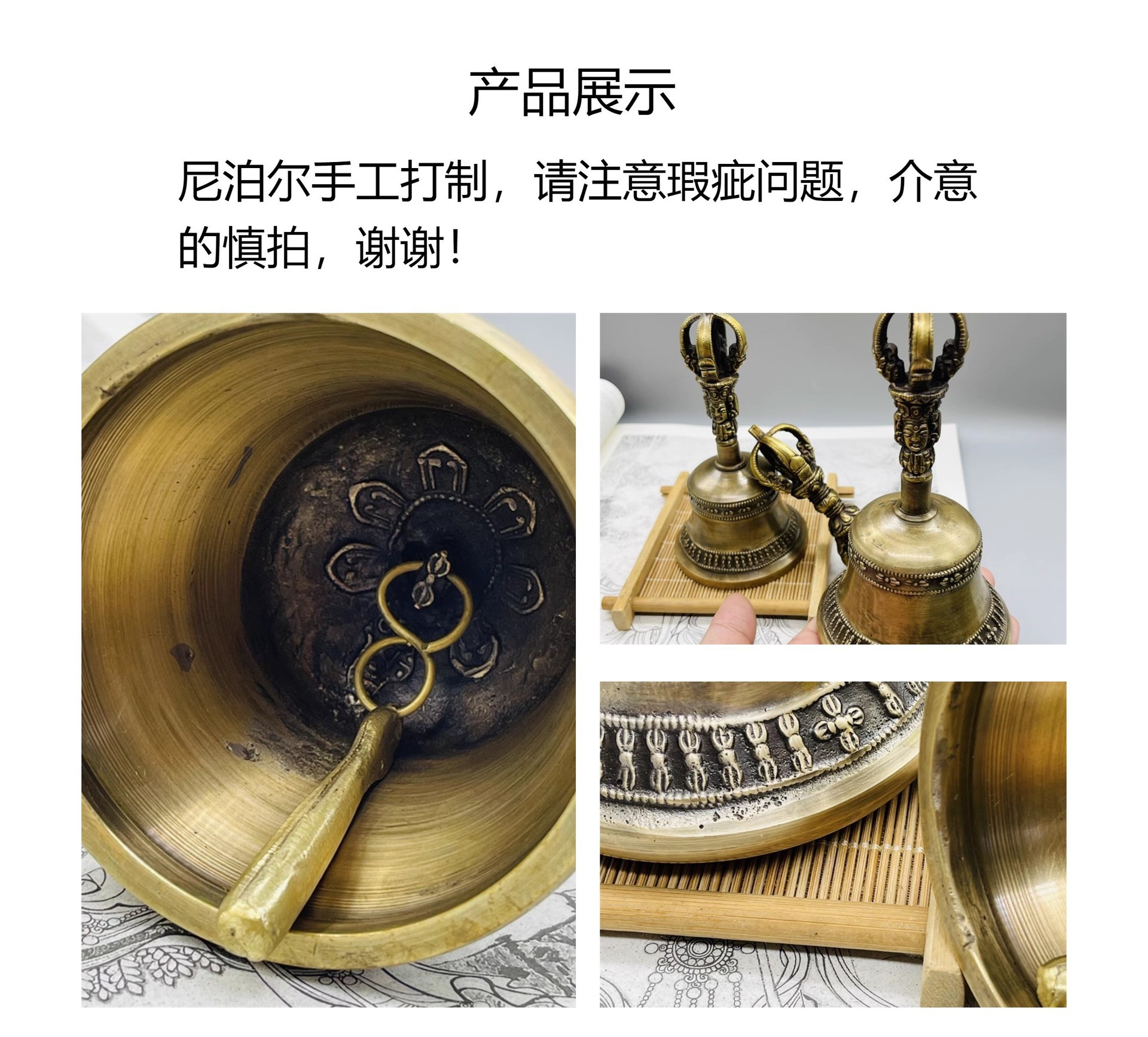尼泊尔五股普巴金刚铃杵八宝雕花铃铛摇铃法器唤醒铃摆件声音清脆