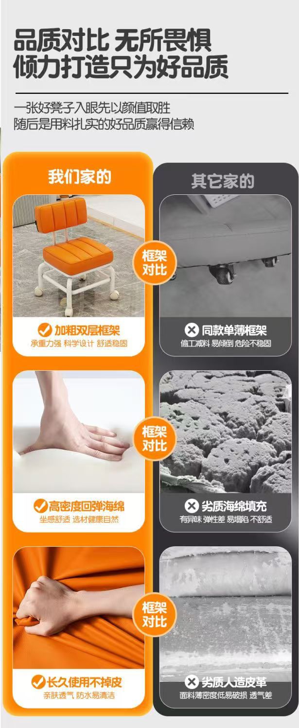 Стул с поворотными колесами, низкий стул, стильный ленивый стул с спинкой для дома