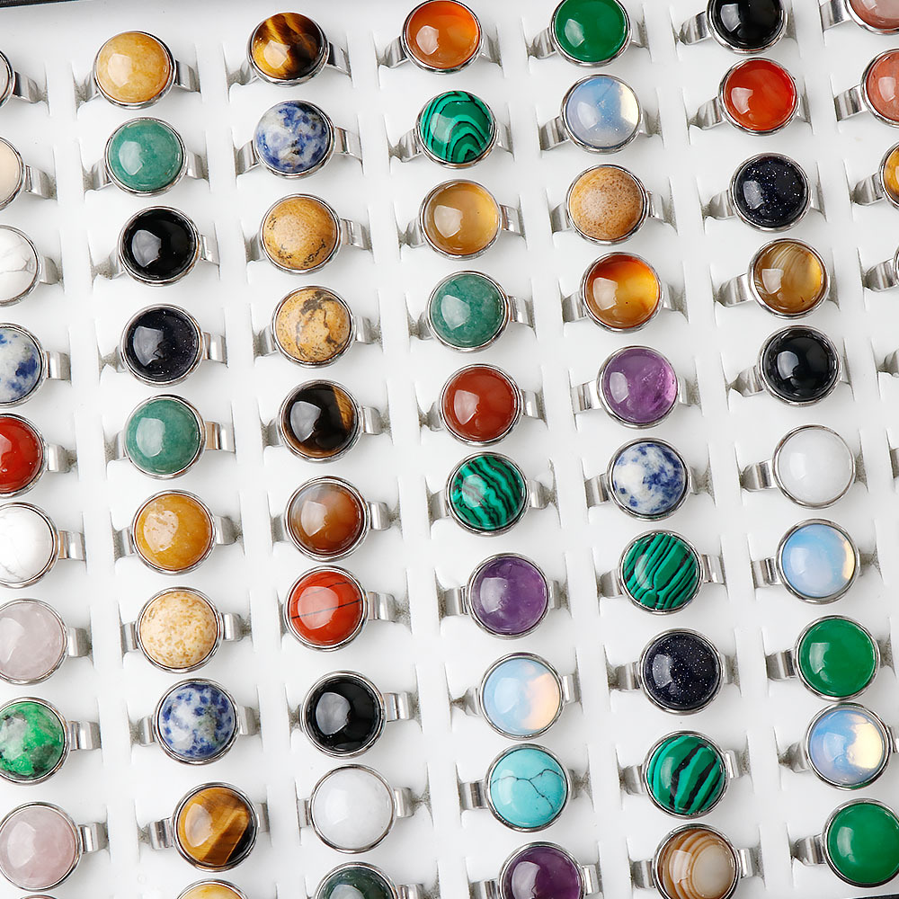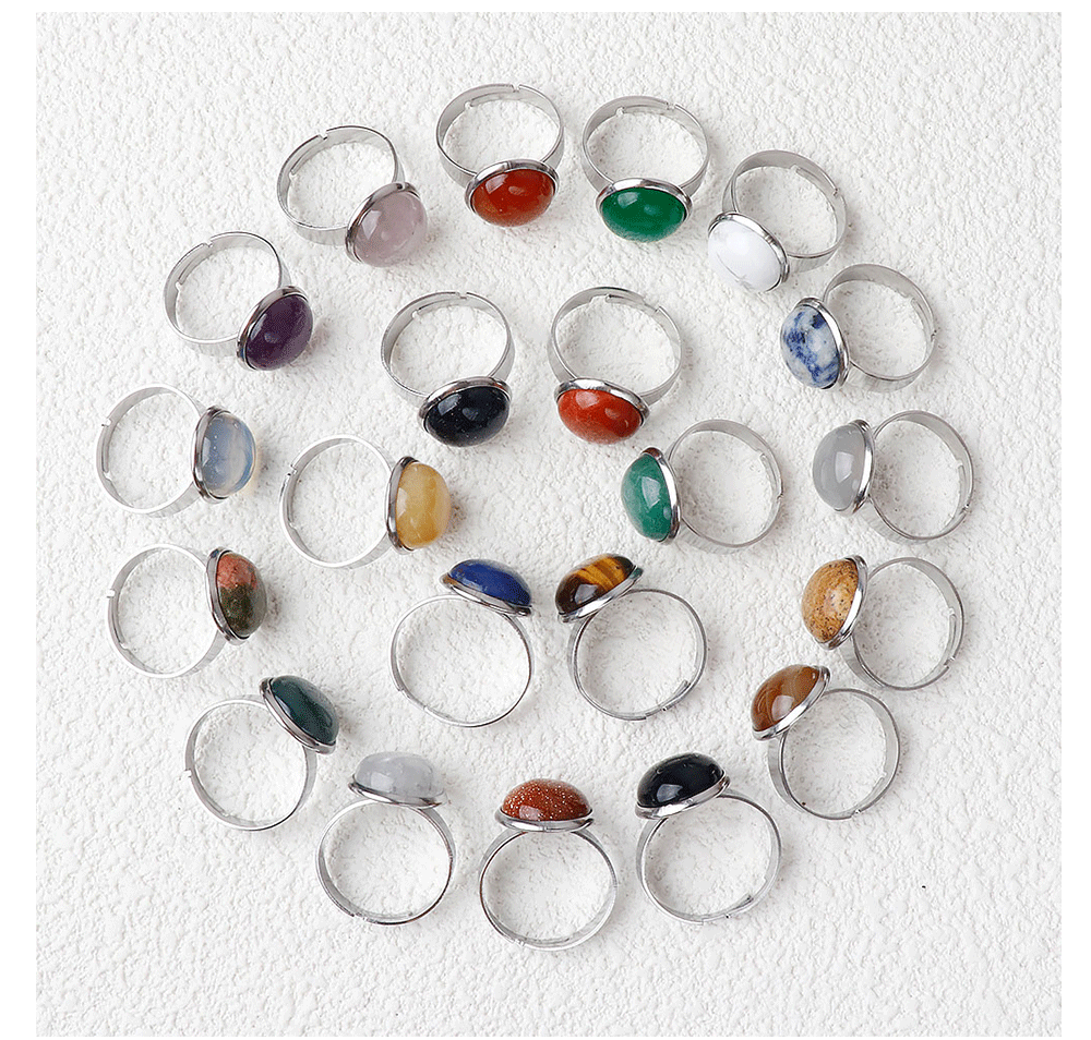 Кольцо из натурального кристалла агат, инкрустированное, из нержавеющей стали