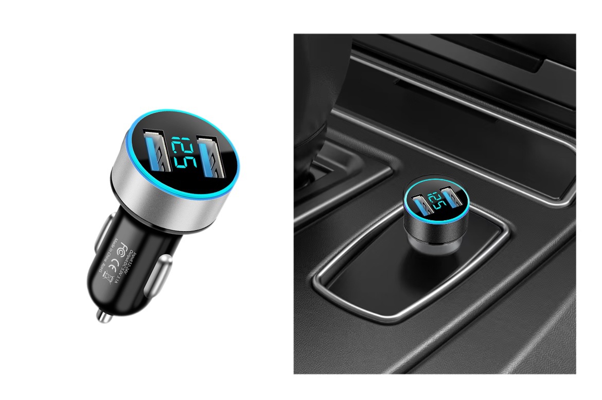 Автомобильное зарядное устройство с двойным USB и цифровым дисплеем 3.1A, один к двум, с прикуривателем, с подсветкой, быстрая зарядка