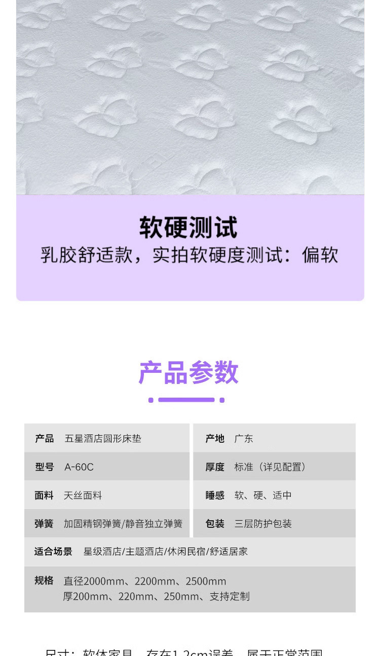 ![]() | 20cm hotel slightly softer model (folded and shipped) | Round bed diameter: 2.0m | ¥800.8 / ≈ 9 741 ₽ | 333 | 5659480589266 | |