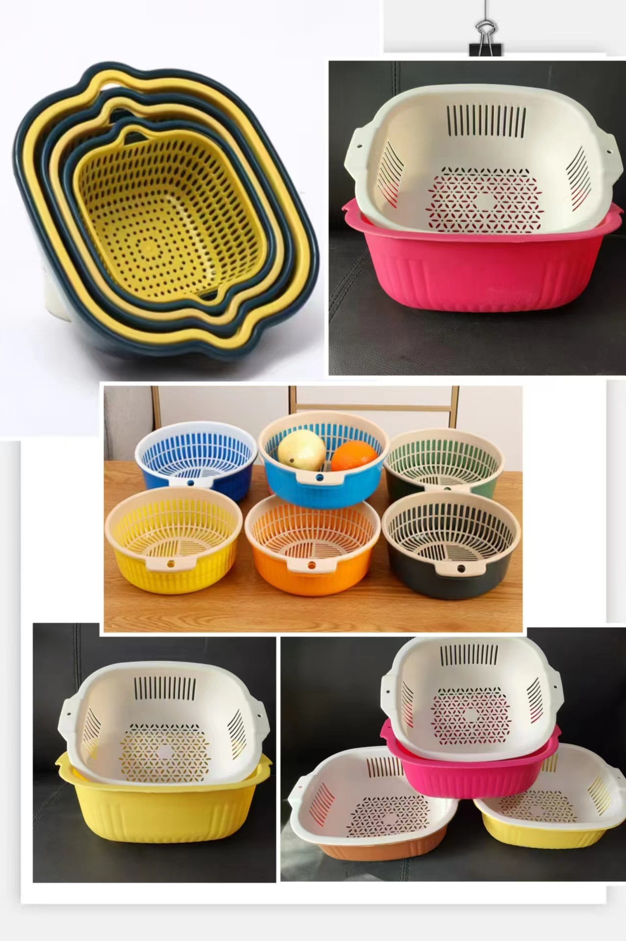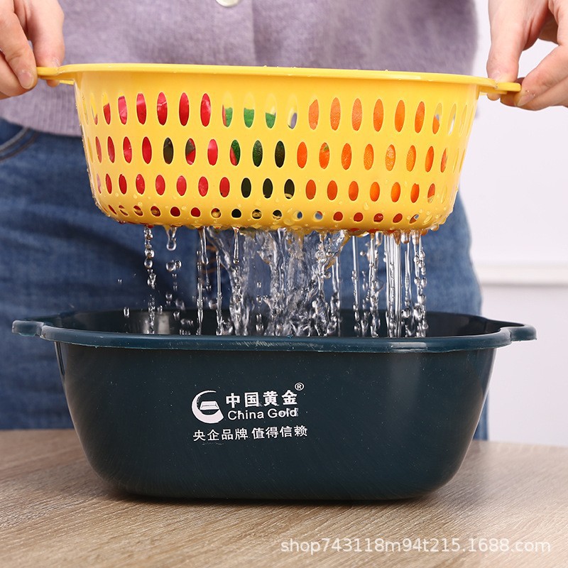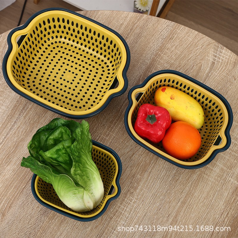 Двухслойная дренажная корзина для мытья овощей пластиковая полая