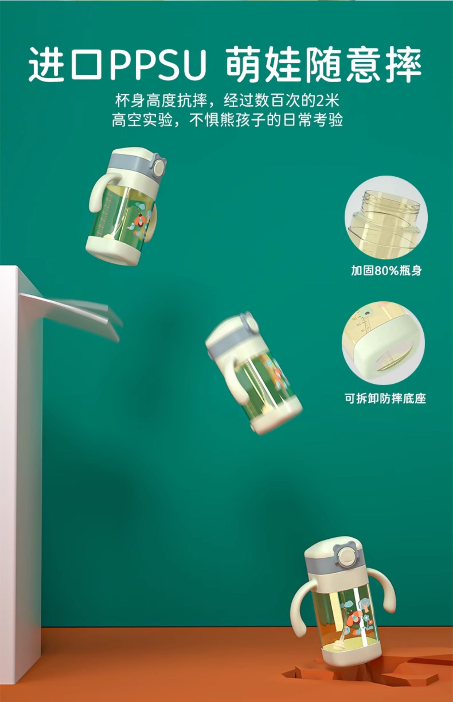 Большая кружка для обучения питью, с поилкой, для детей старше одного года, бутылка для детей 2-3 лет, с двумя противоударными звездами
