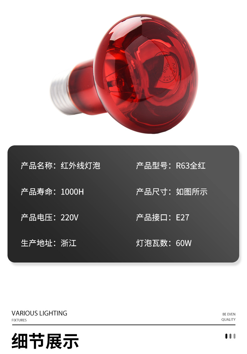 R63 60W инфракрасная лампа для обогрева животных и людей