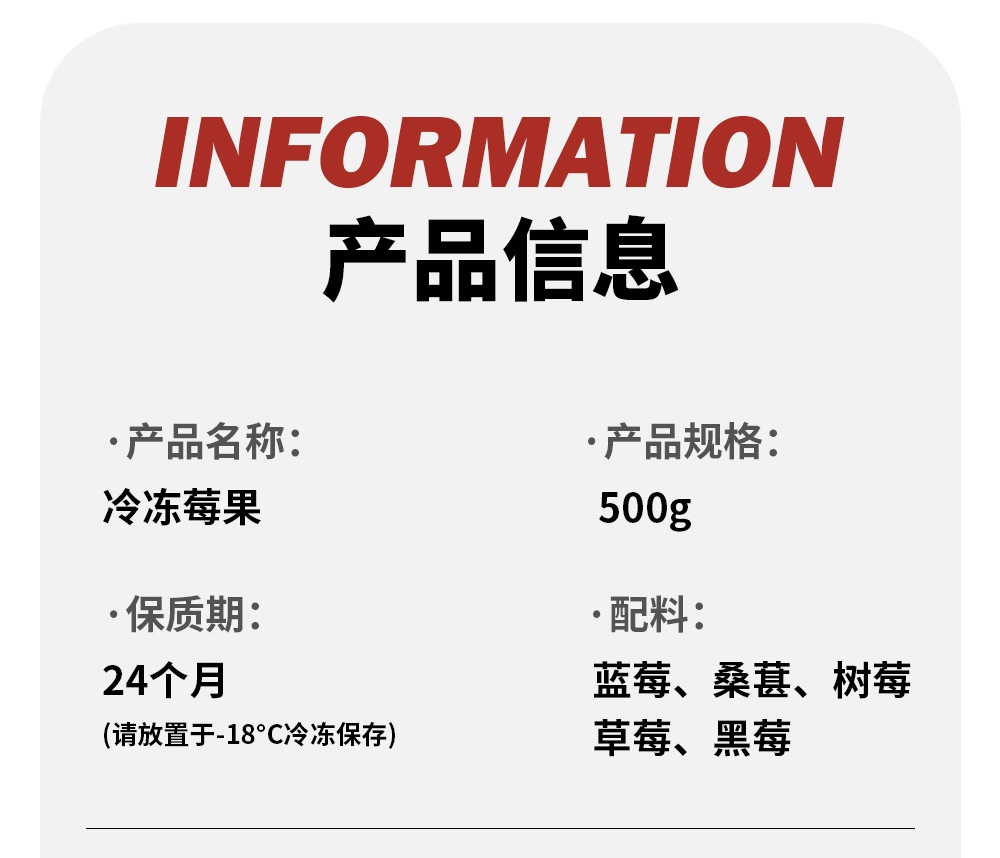 ![]() | Quick-frozen mixed berry (raspberry strawberry blueberry blackberry mulberry) | ¥12.0 / ≈ 146 ₽ | 9506 | 5827672271807 | |