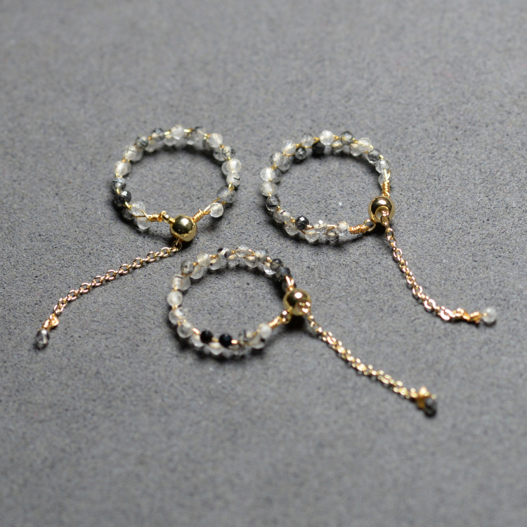 Кольцо из черного волосатого кристалла, регулируемое кольцо для женщин