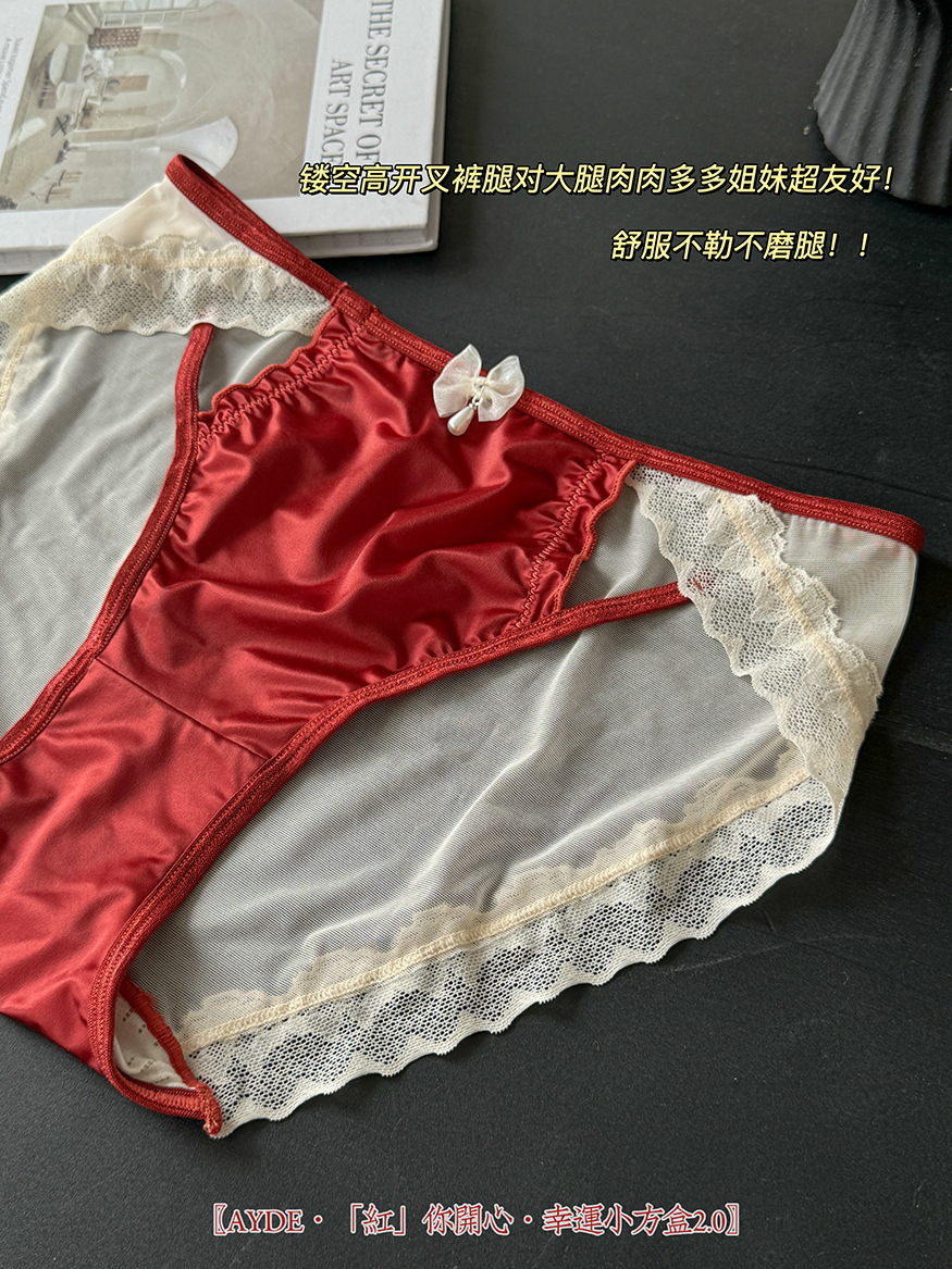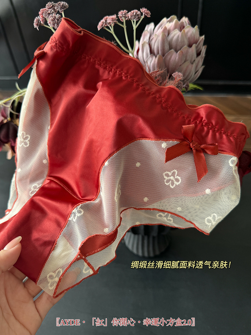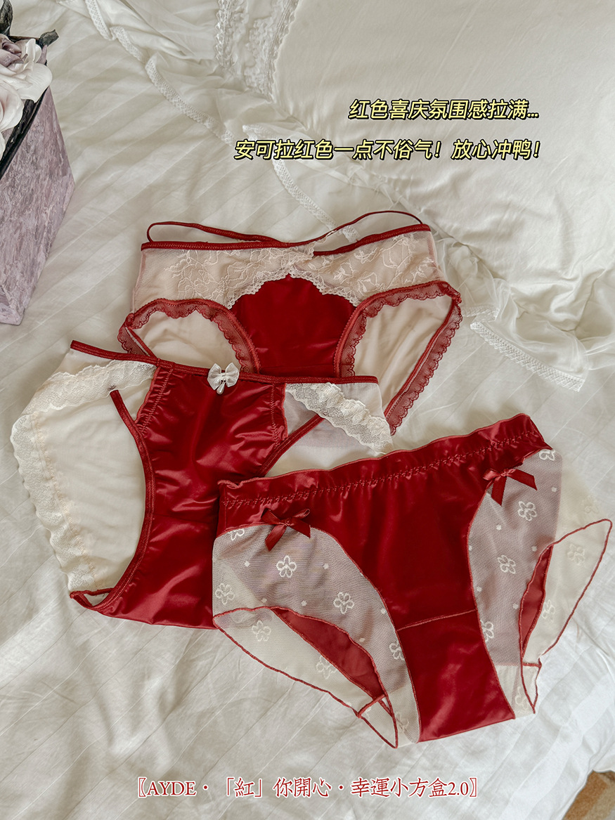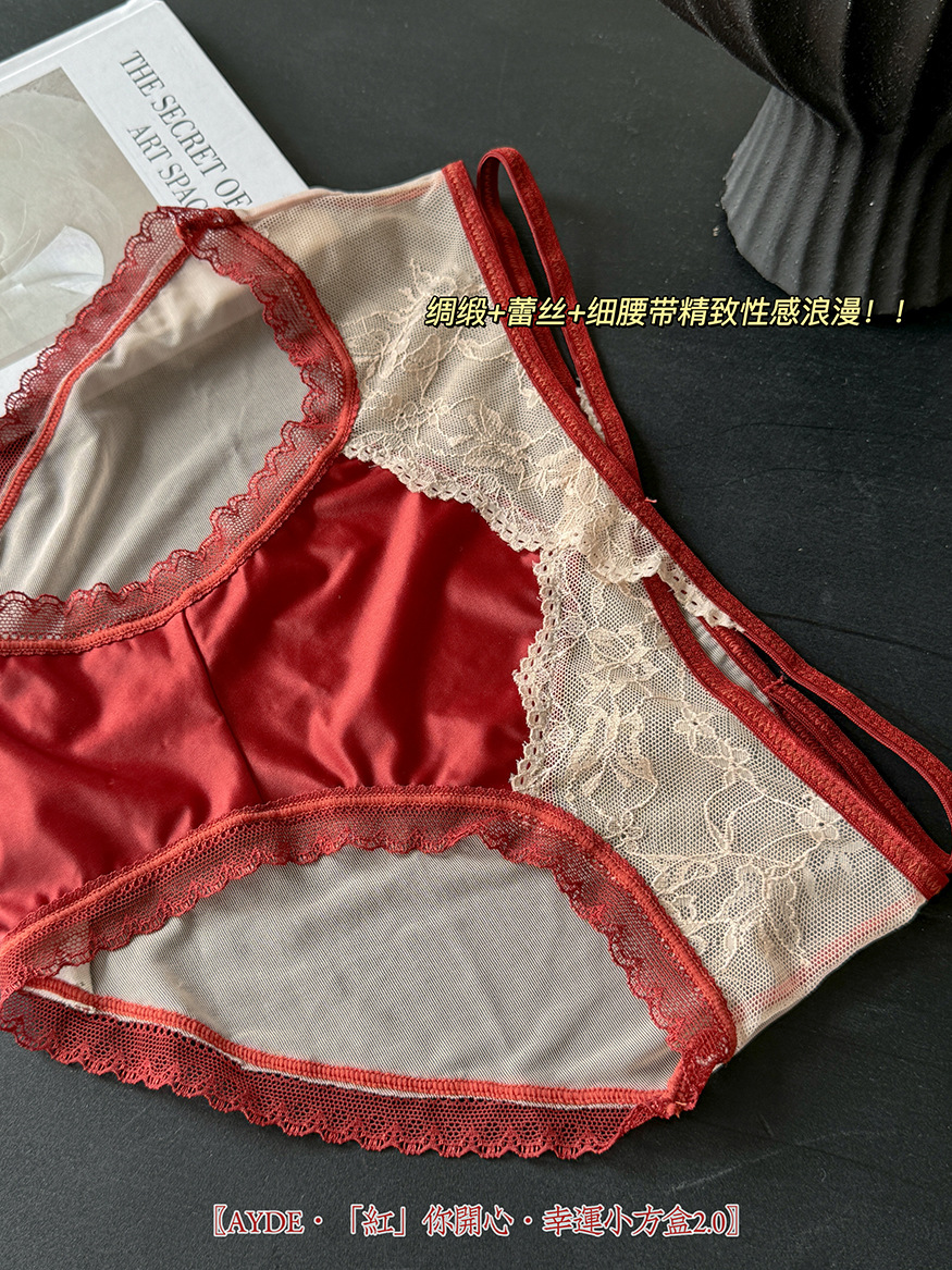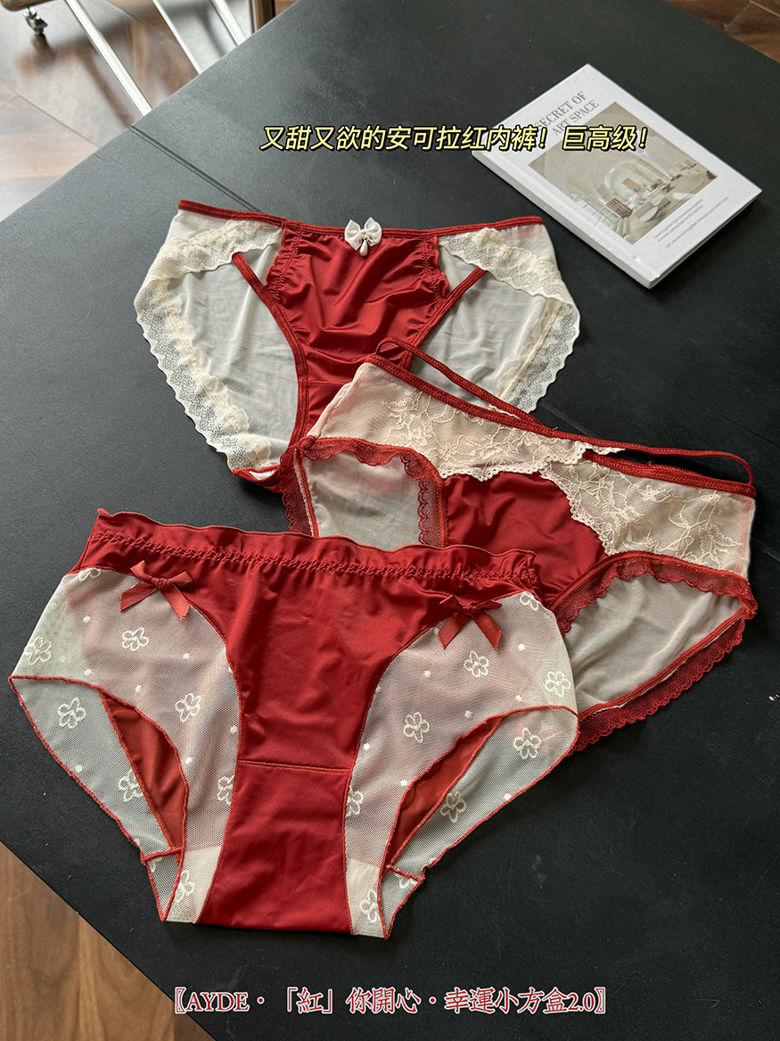 Ancola красное женское нижнее белье, трусики средней талии, шелковый атлас, кружево, новый год, красные треугольные шорты
