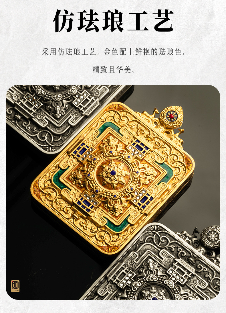 Оригинальный Дизайн Латунь Двойной Олень Вращающаяся Мандала Тханка Коробка Автомобильная Подвеска