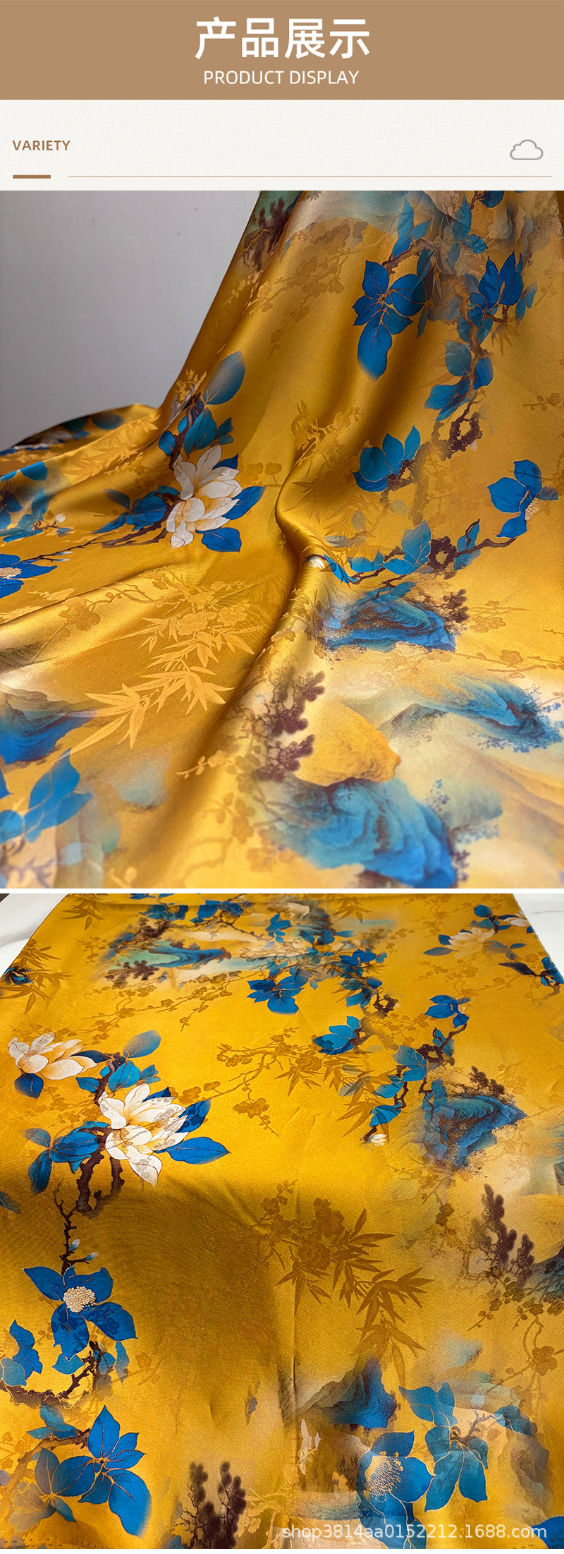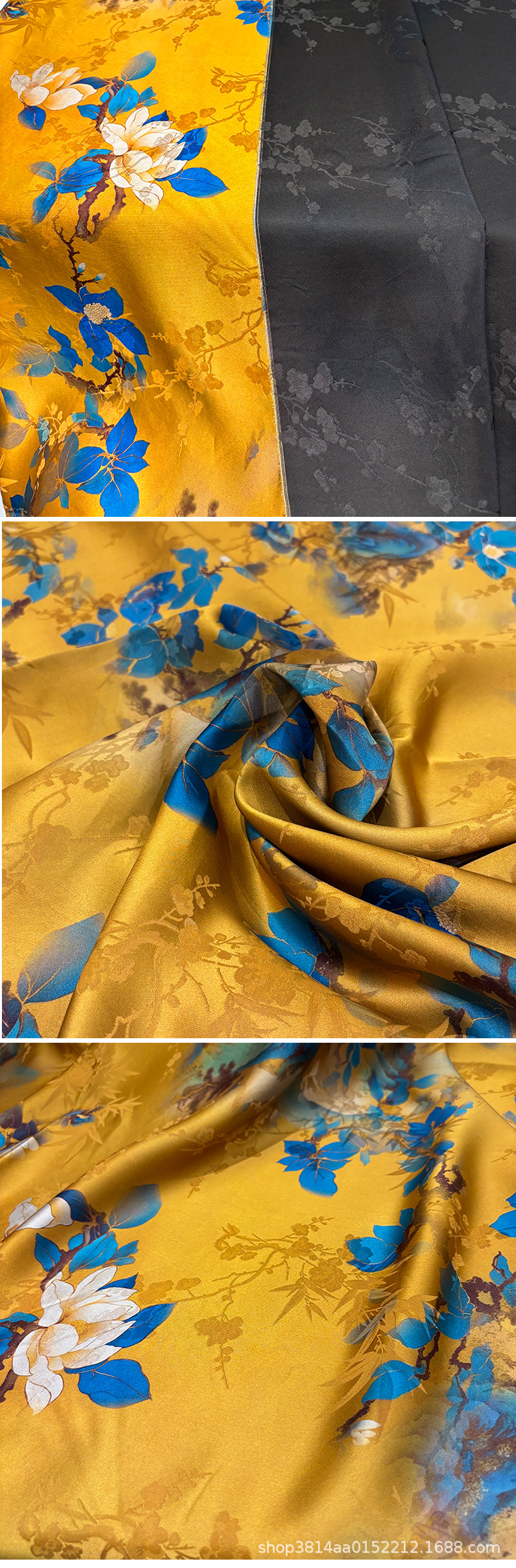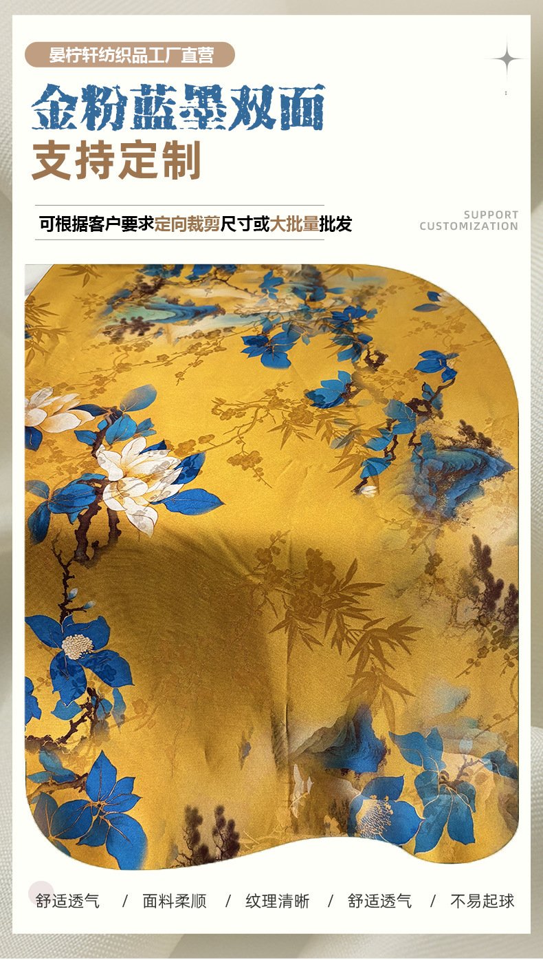 Ткань из золотого шелка, имитация шелка, для чонгсам, цветочная ткань