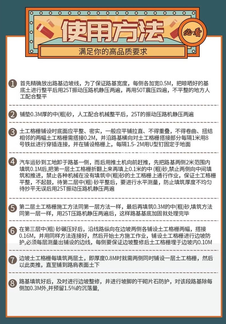 Цель It can be used on highways, railways, road embankments, bridges, construction feeder, dock, shore protection, flood embankment prevention, water dam, beach coating governance, cargo courts, slag fields, airports, sports fields