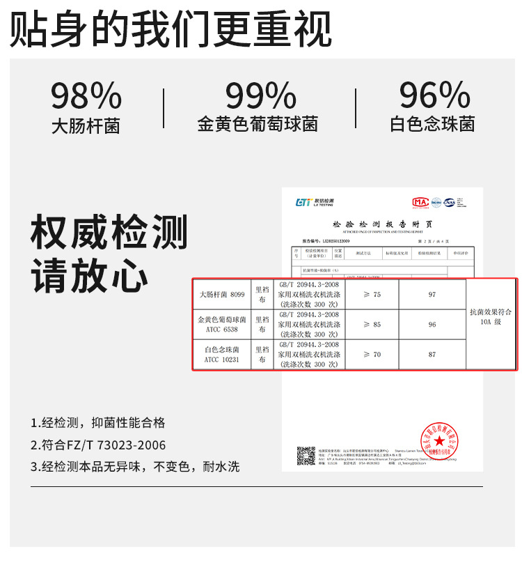 Содержание ингредиентов подкладки в области паха 100%