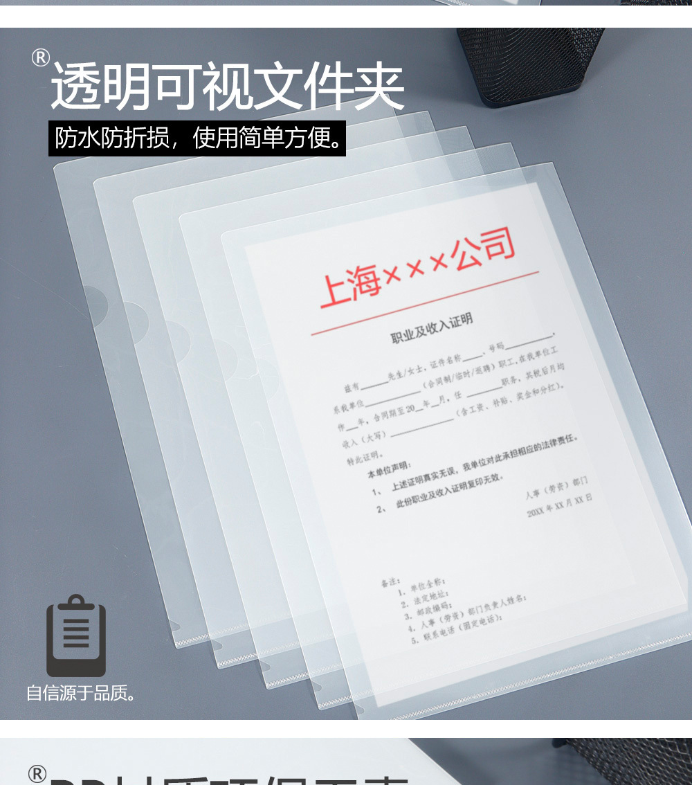 Прозрачная L-образная папка A4, утолщенная папка для данных