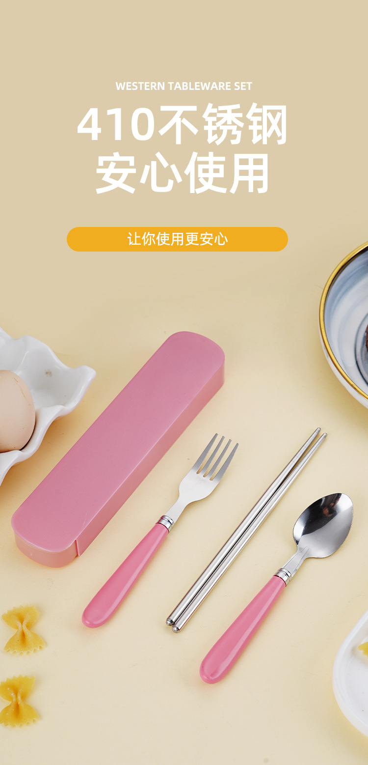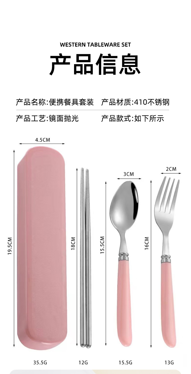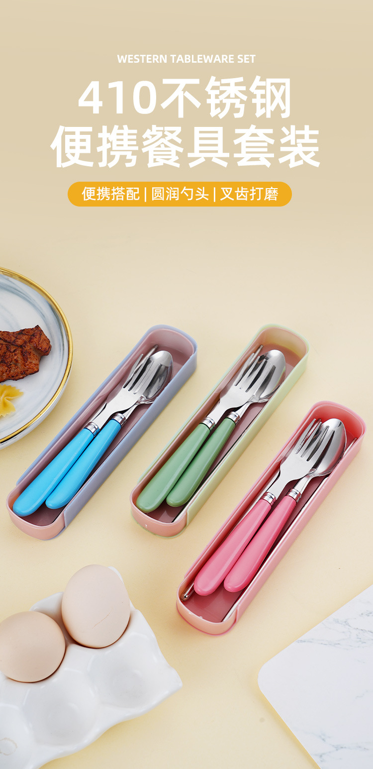 Номер товара Stainless steel portable tableware with raised tail plastic handle