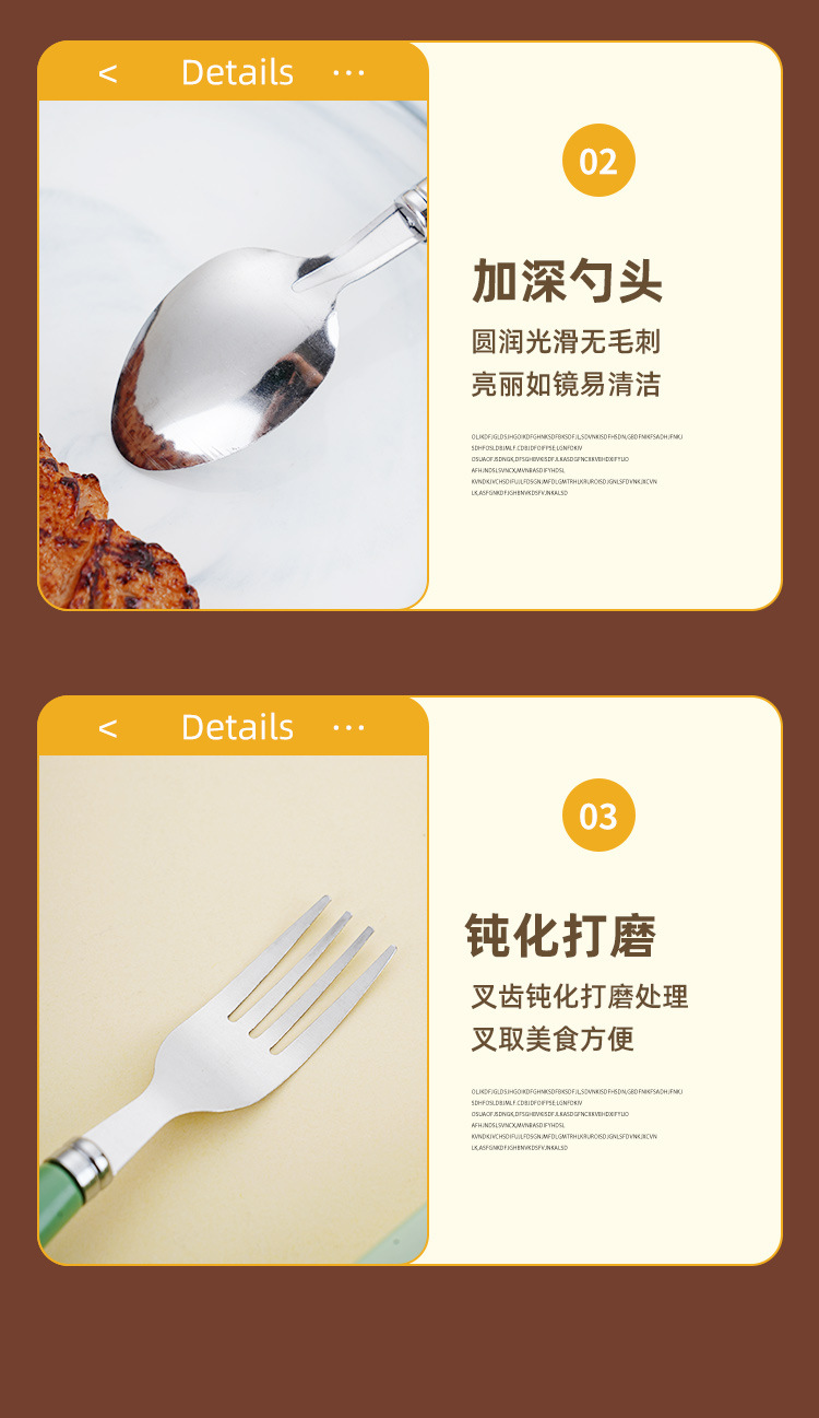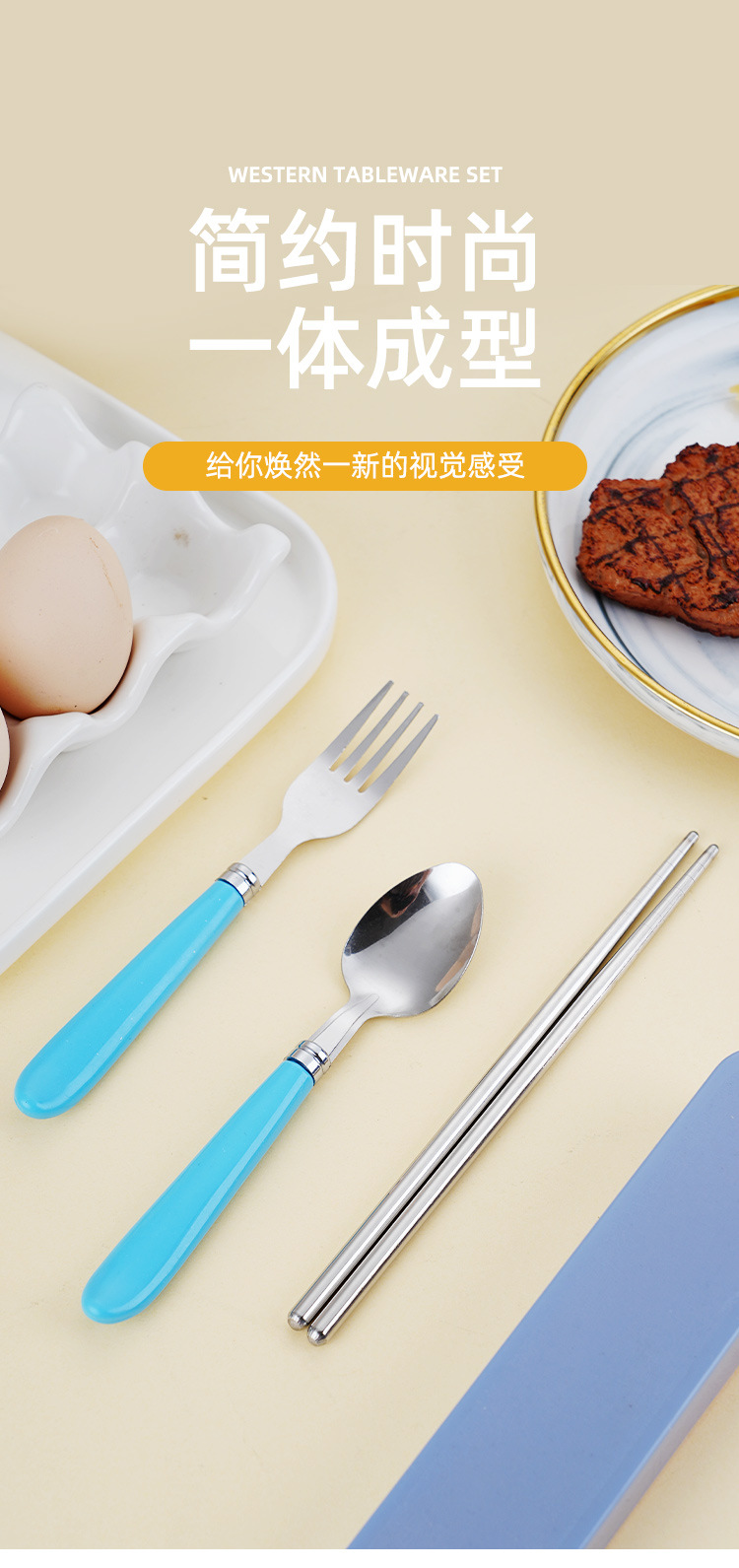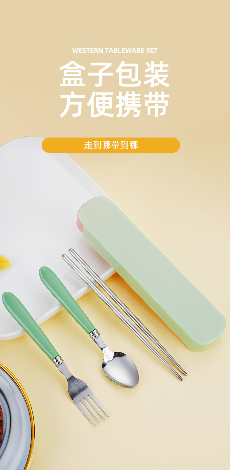 Номер товара Stainless steel portable tableware with raised tail plastic handle