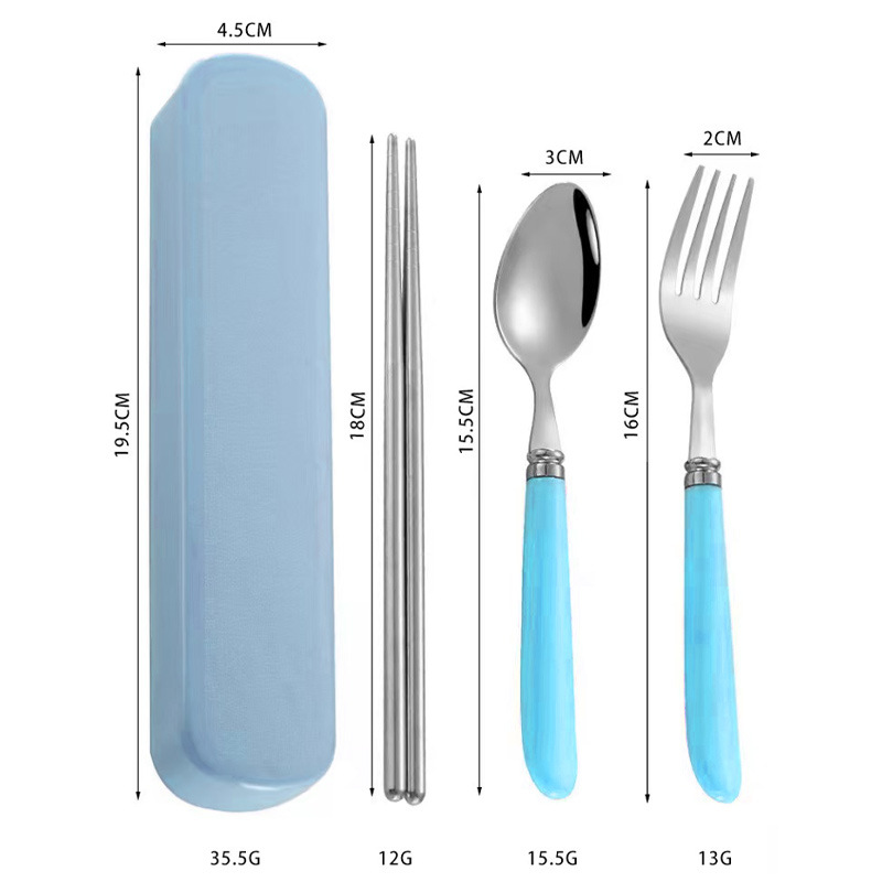 Портативный набор столовых приборов: 3 предмета из нержавеющей стали, ложка, палочки для еды, вилка, популярный подарок для студентов и детей