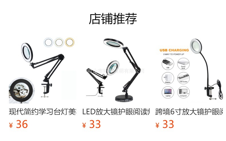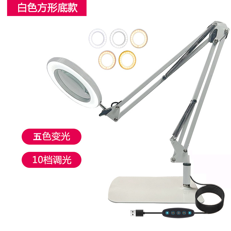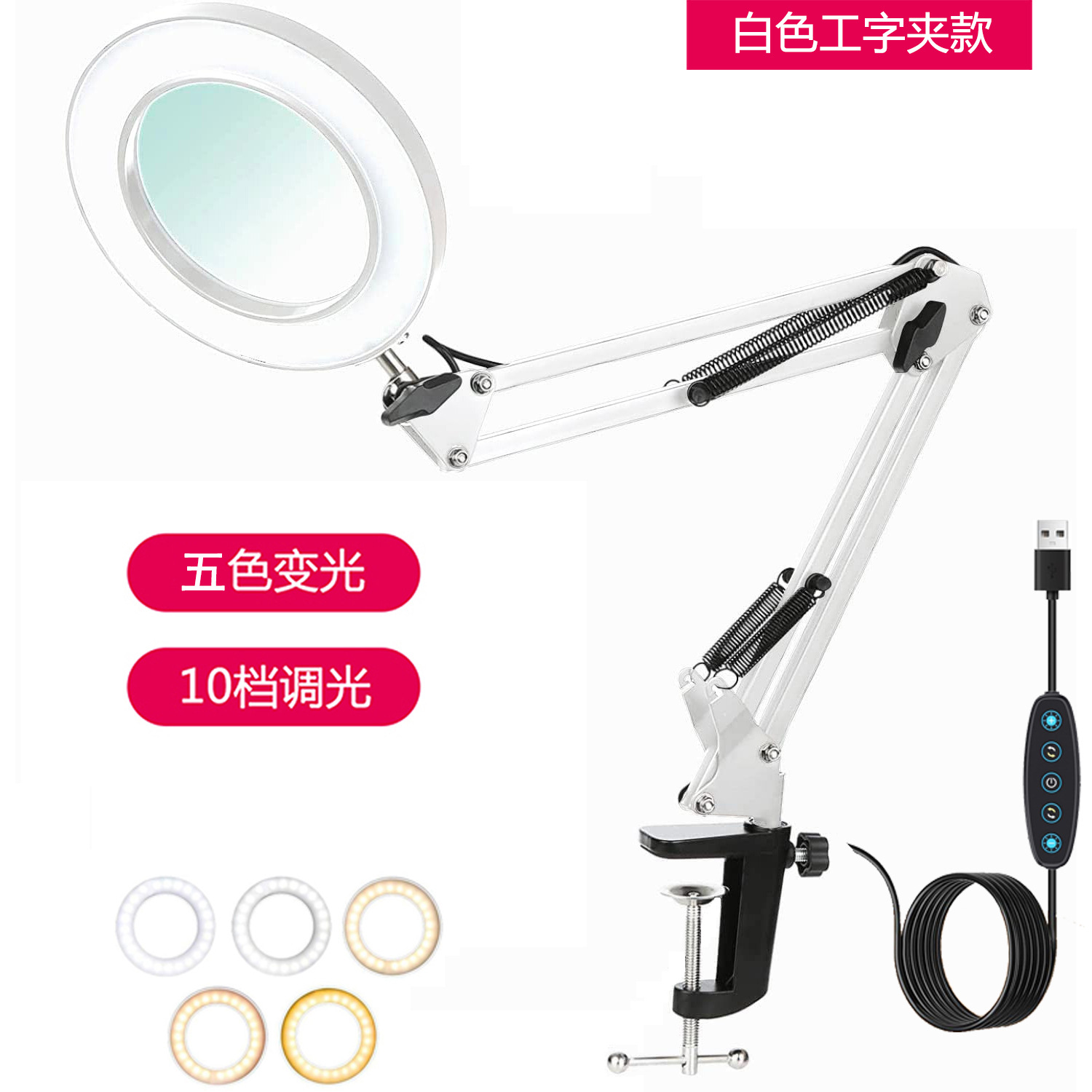 Атрибуты продукта The diameter of the lamp head is 16cm, made of aluminum alloy, metal bracket, 5-tone temperature, usb wire control, equipped with 5,10x mirror, aluminum clip, iron clip, iron plate
