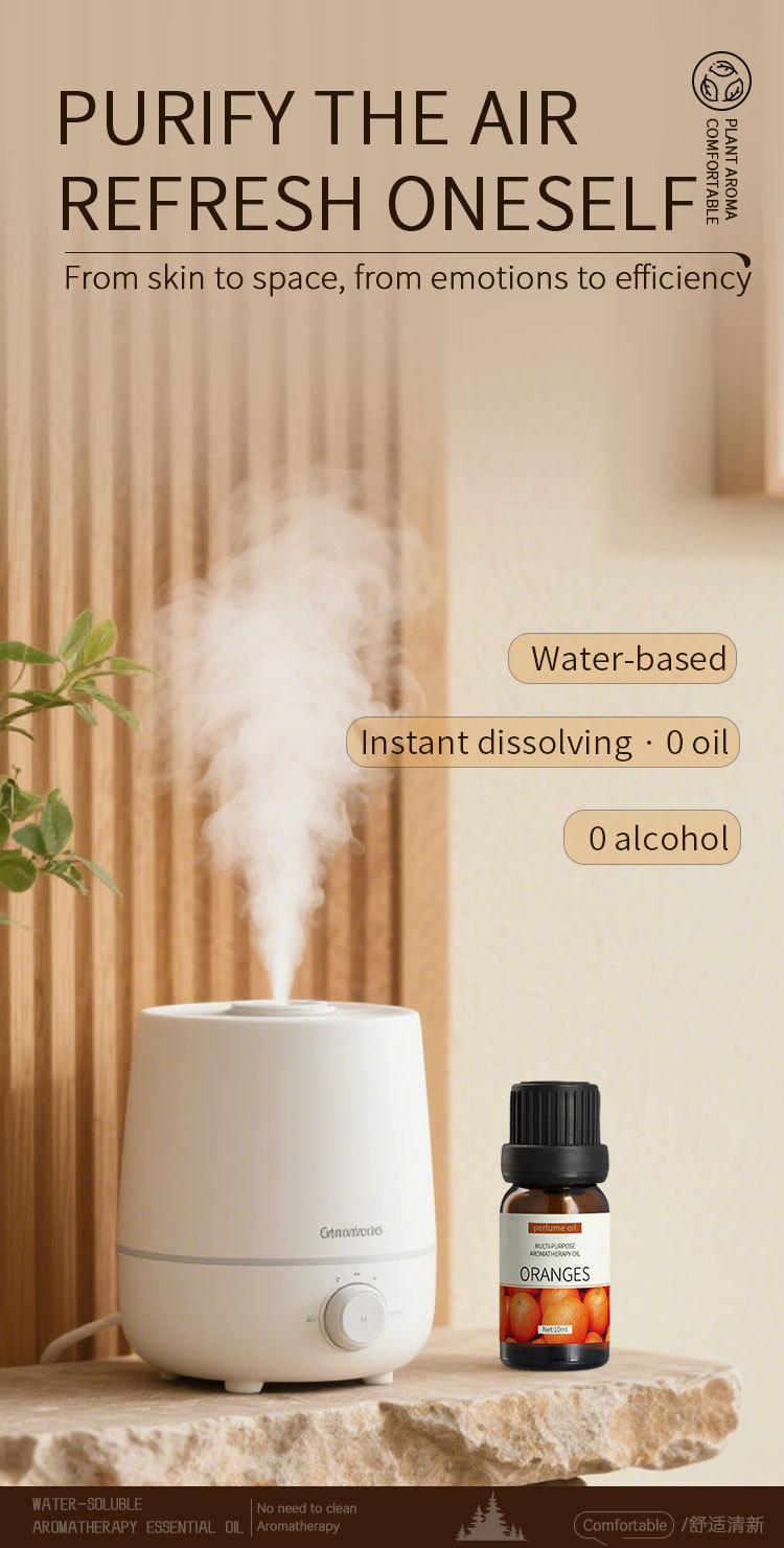 Not all essential oils are used for the same purpose. These water-soluble oils are designed for diffusers that use water. Oil-based essential oils are more suitable for waterless diffusers or aroma stones. Massage oils, when mixed with carrier oils, can only be used on the skin - not in diffusers. Please choose the appropriate type according to your needs.