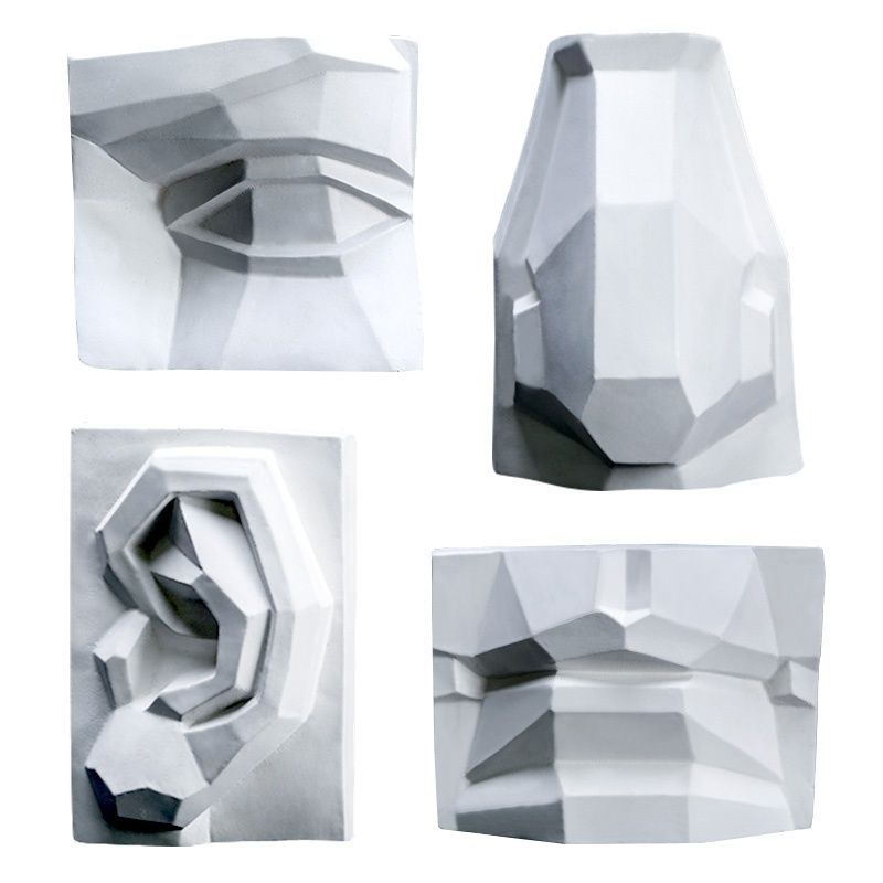 Гипсовое изображение лицевых черт, модель лица, глаз, уха, носа и рта, декор для художественной студии