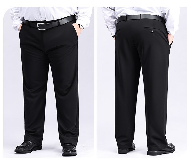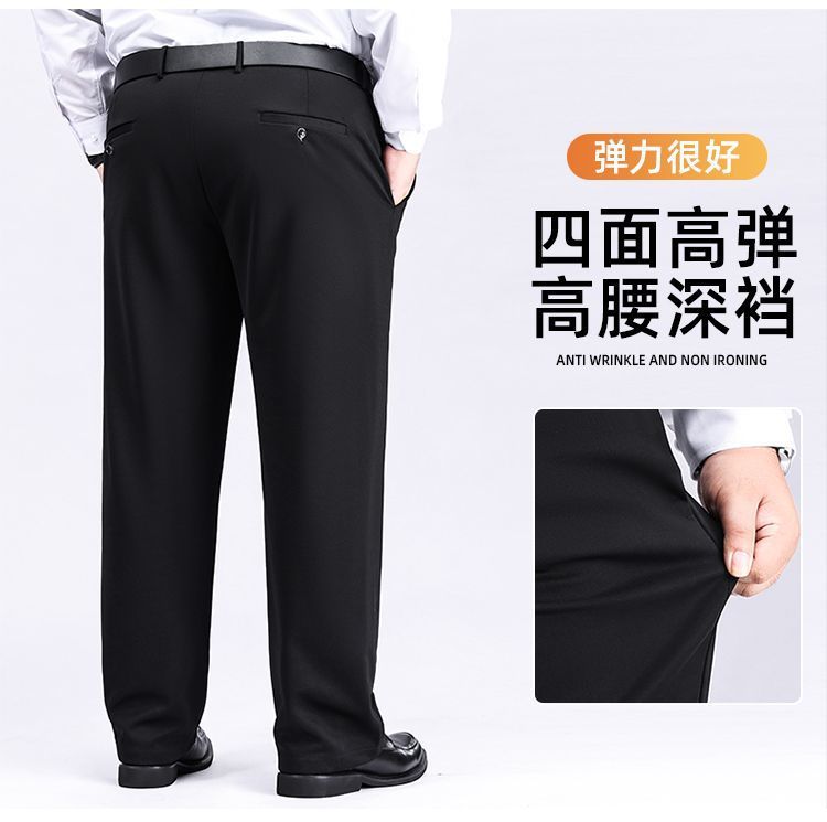 Брюки большого размера, мужские, эластичные, для мужчин среднего возраста, свободные, прямые, повседневные, с утеплителем, утолщенные
