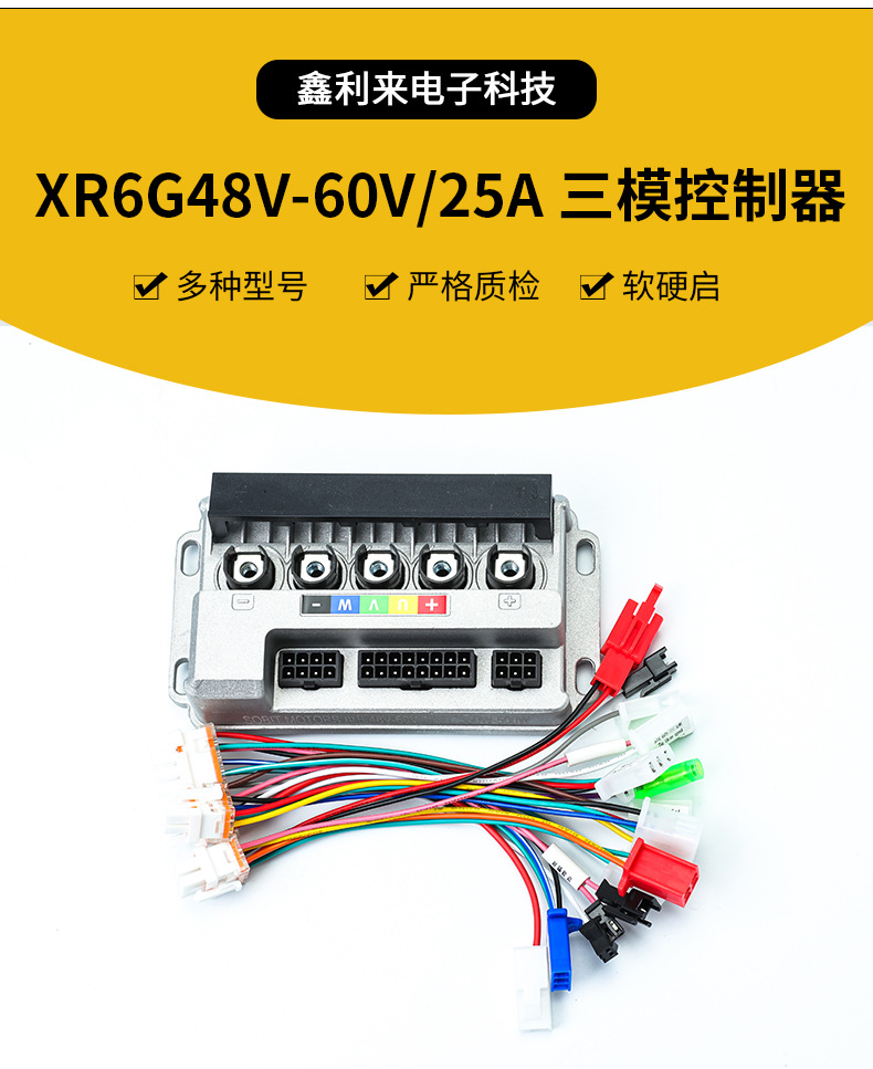 Контроллер для электромобиля XR6G48V-60V/25A синусоидальный трехрежимный контроллер синусоидальный бесшумный модуль