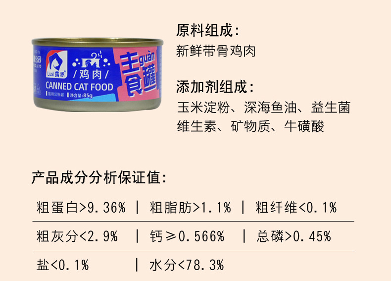 ![]() | 85g/can | [chicken flavor] staple food mousse jar | 1шт: ¥1.50, 24шт: ¥1.20, 2000шт: ¥0.85 | 4082 | 5966392238159 | |