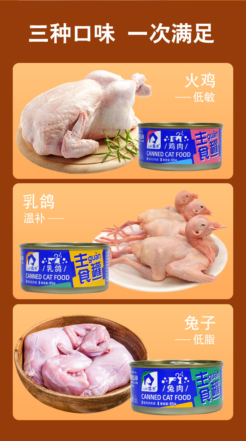 ![]() | 85g/can | [pigeon flavor] staple food mousse jar | 1шт: ¥1.50, 24шт: ¥1.20, 2000шт: ¥0.85 | 6845 | 5966392238161 |