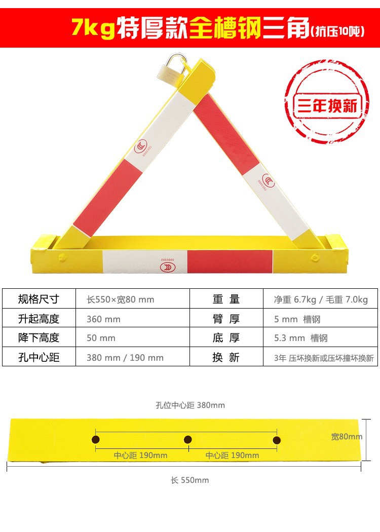 Замок парковочного места, устойчивый к давлению и ударам, замок для пола из каналов, без сверления, ультра-утолщенный и прочный замок для пола парковочного места