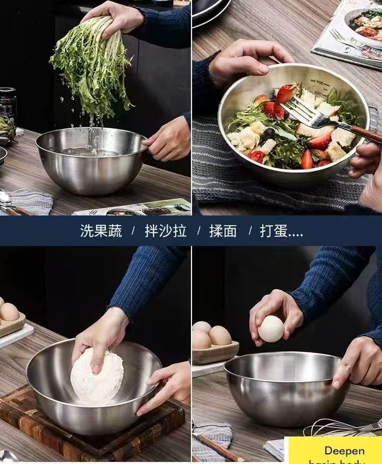 Простая утолщенная чаша для салата в корейском стиле из нержавеющей стали, чаша для холодной лапши и бибимбапа