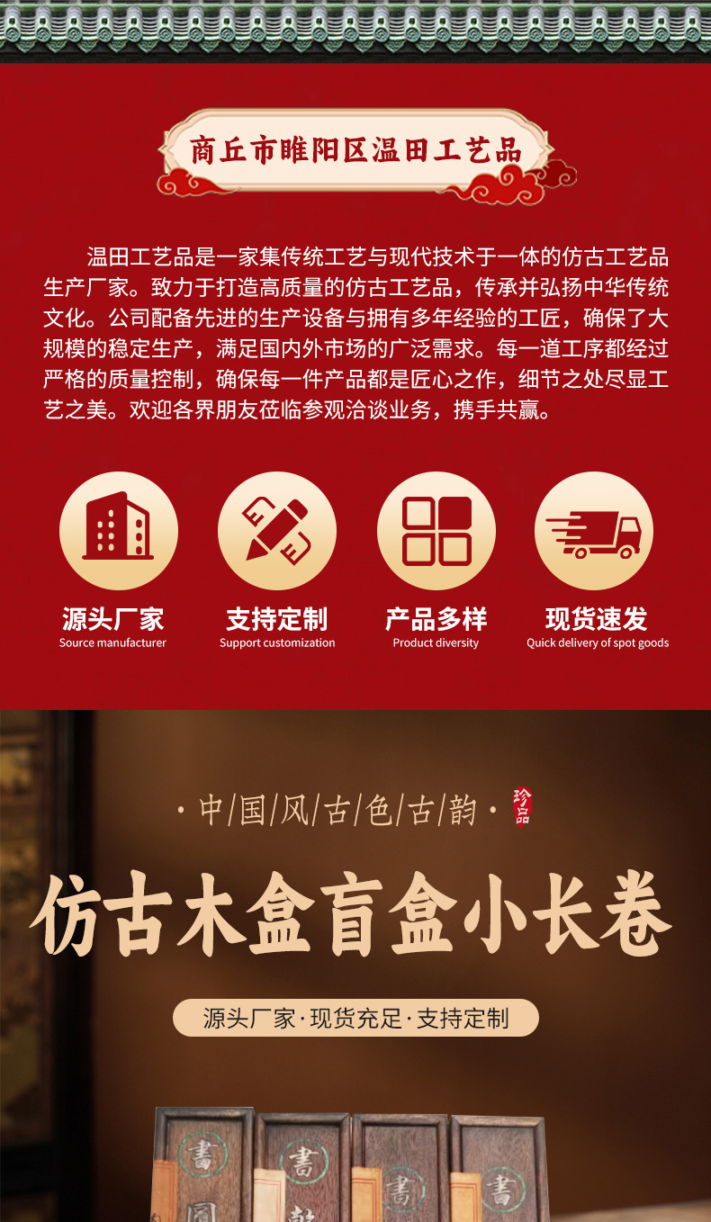 Антикварная деревянная коробка с маленьким свитком, случайные работы знаменитостей в слепых коробках