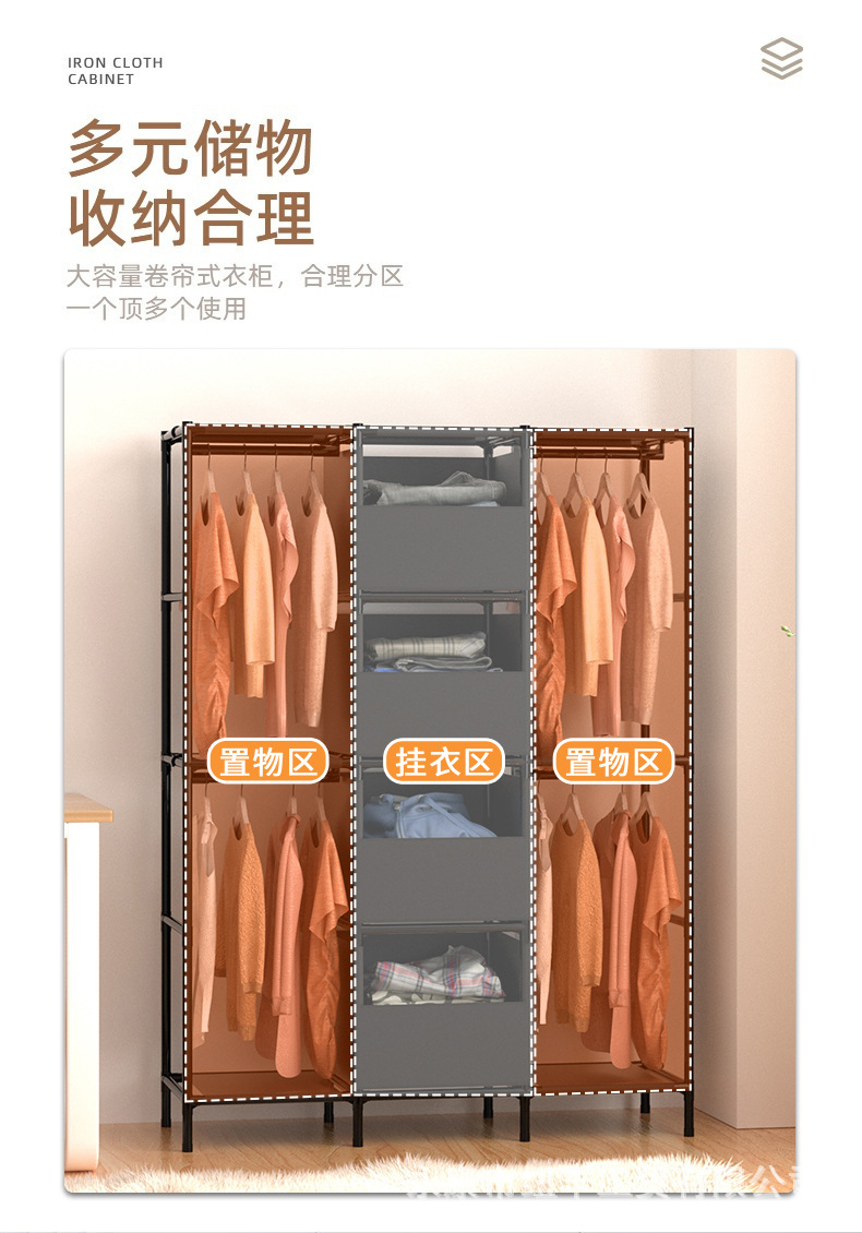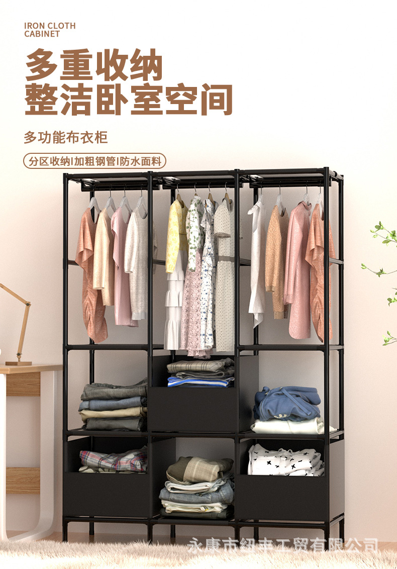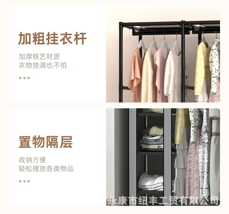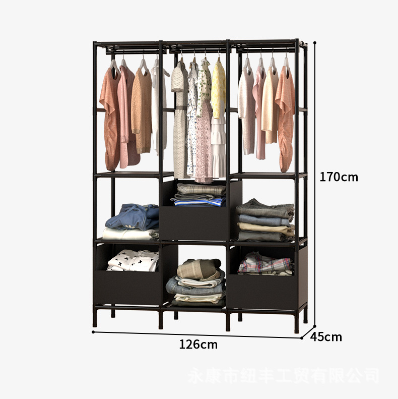 Простой вешалка для одежды, пылезащитный, нетканевый шкаф, большая емкость, стеллаж для хранения в общежитии, сборка вешалки для одежды
