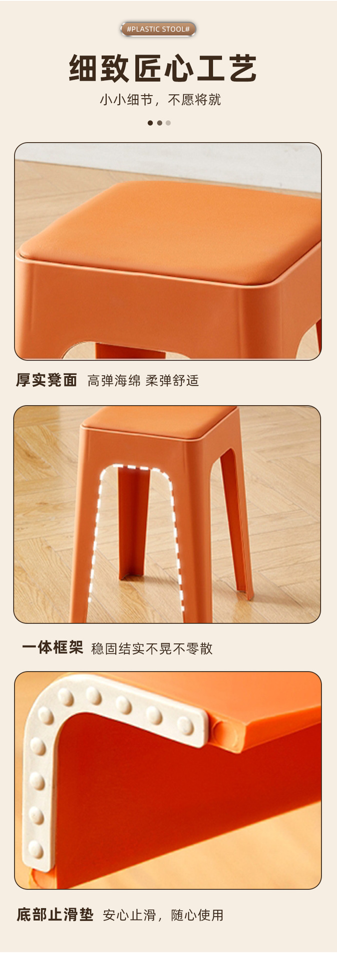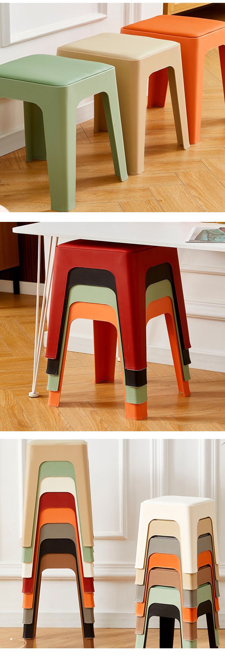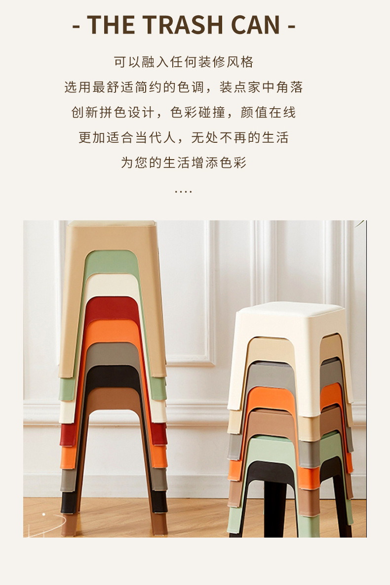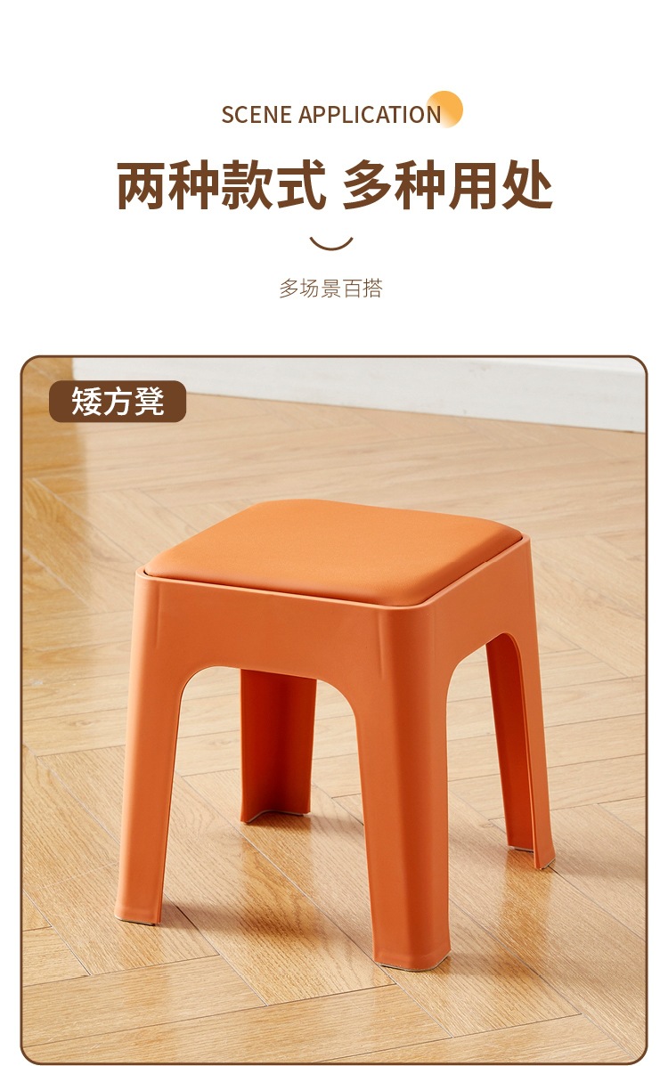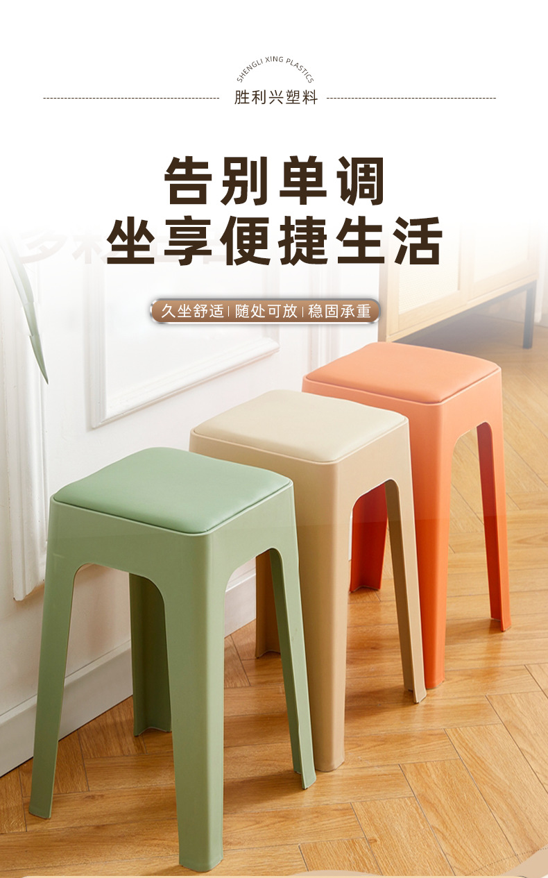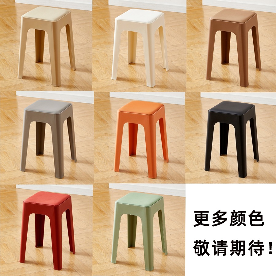 塑料凳子家用餐厅成人餐凳可叠摞客厅收纳凳简约防滑凳软包方凳