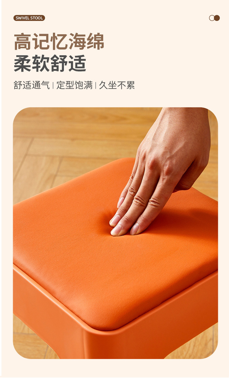 Пластиковый табурет для дома, ресторанный взрослый обеденный табурет, складной табурет для хранения в гостиной, простой нескользящий табурет, мягкий квадратный табурет