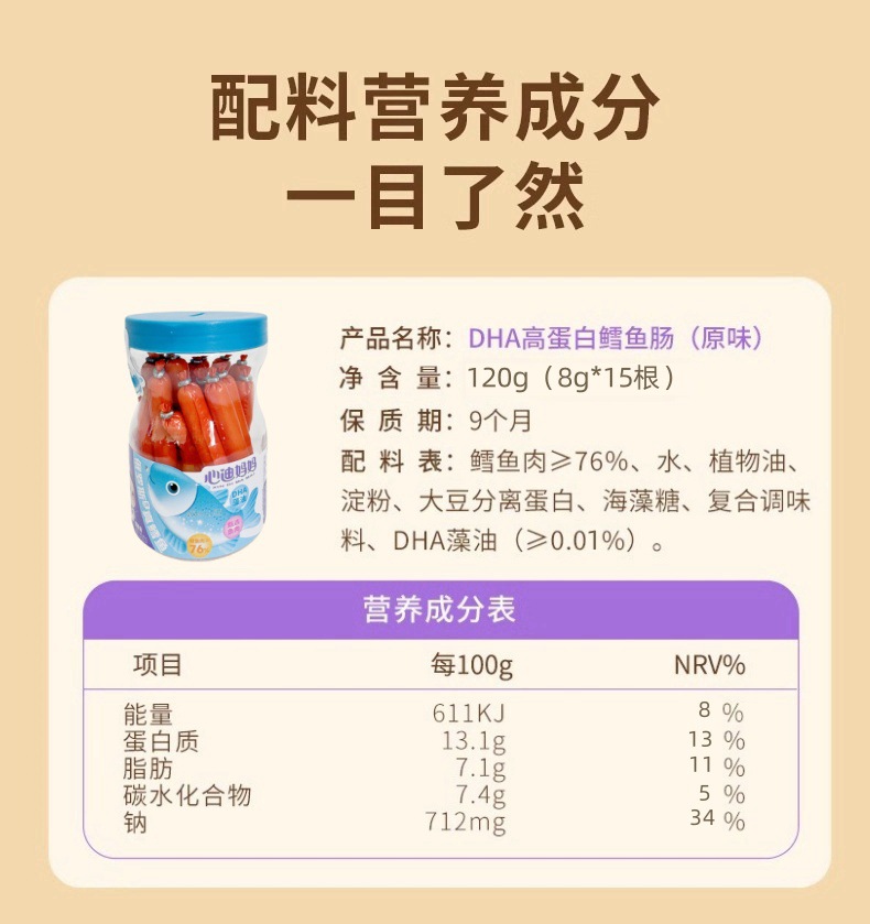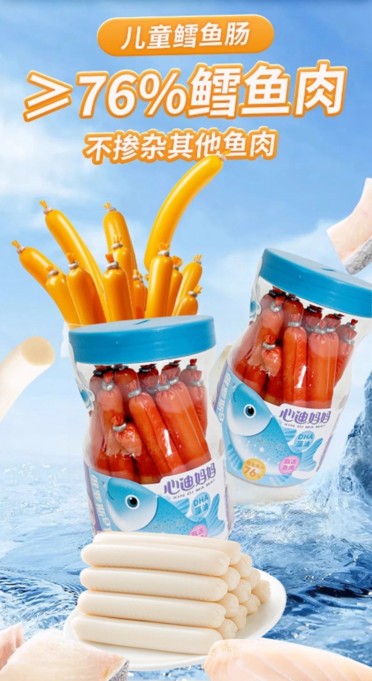 (Новинка 25 августа) Русская колбаса из трески Xindi Mama 120г, детская мясная закуска