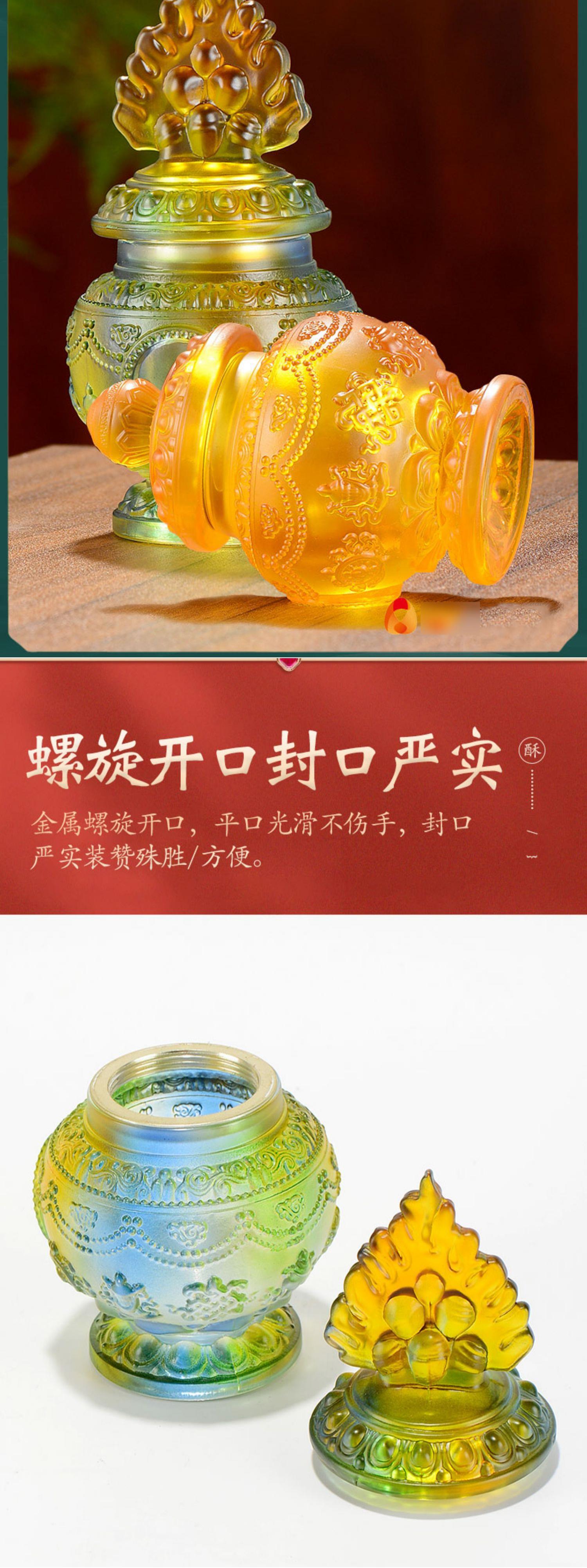 Сокровищная бутылка Будды Бога богатства Преджертвенная стеклянная современная Восемь благоприятных орнаментов Принадлежности для семи сокровищных бутылок