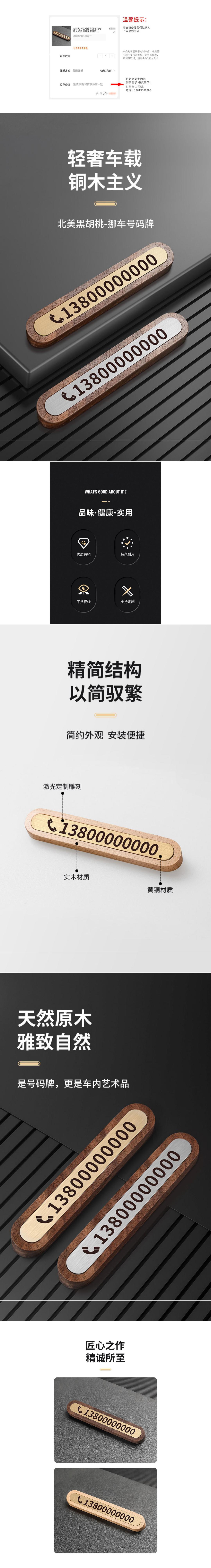 Временный парковочный номерной знак из массива дерева, номер телефона автомобиля, движущийся номерной знак, креативные украшения, медная деревянная ручная работа