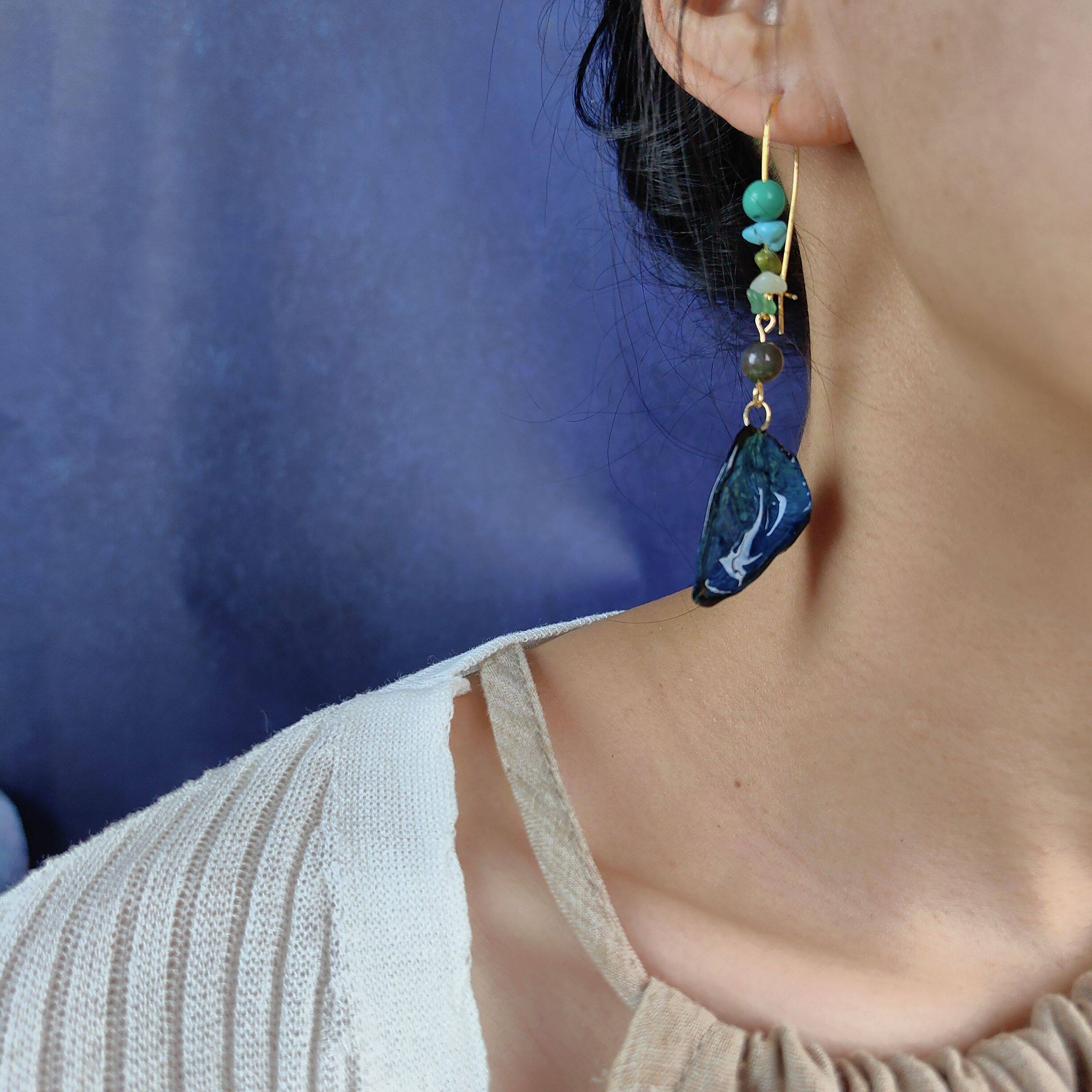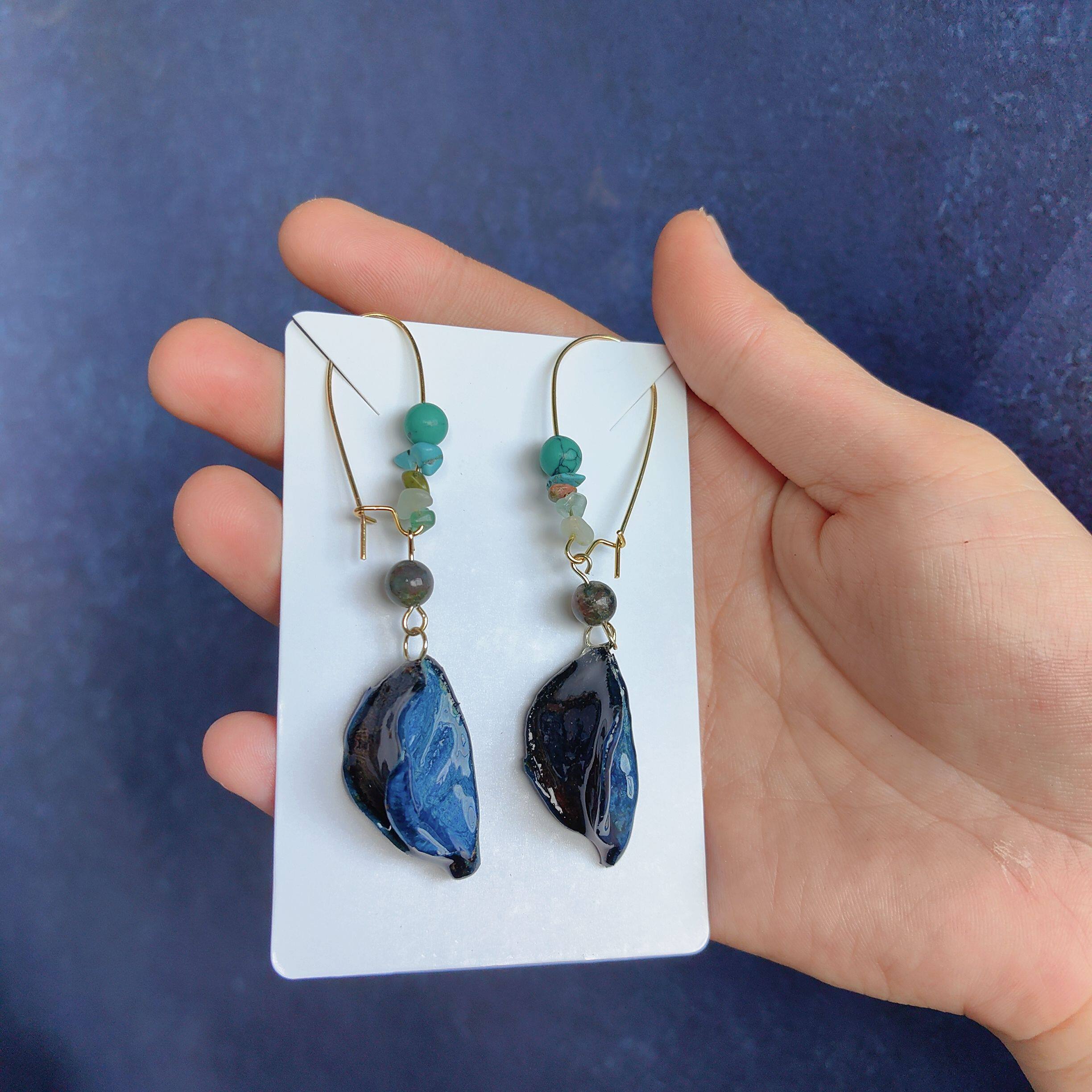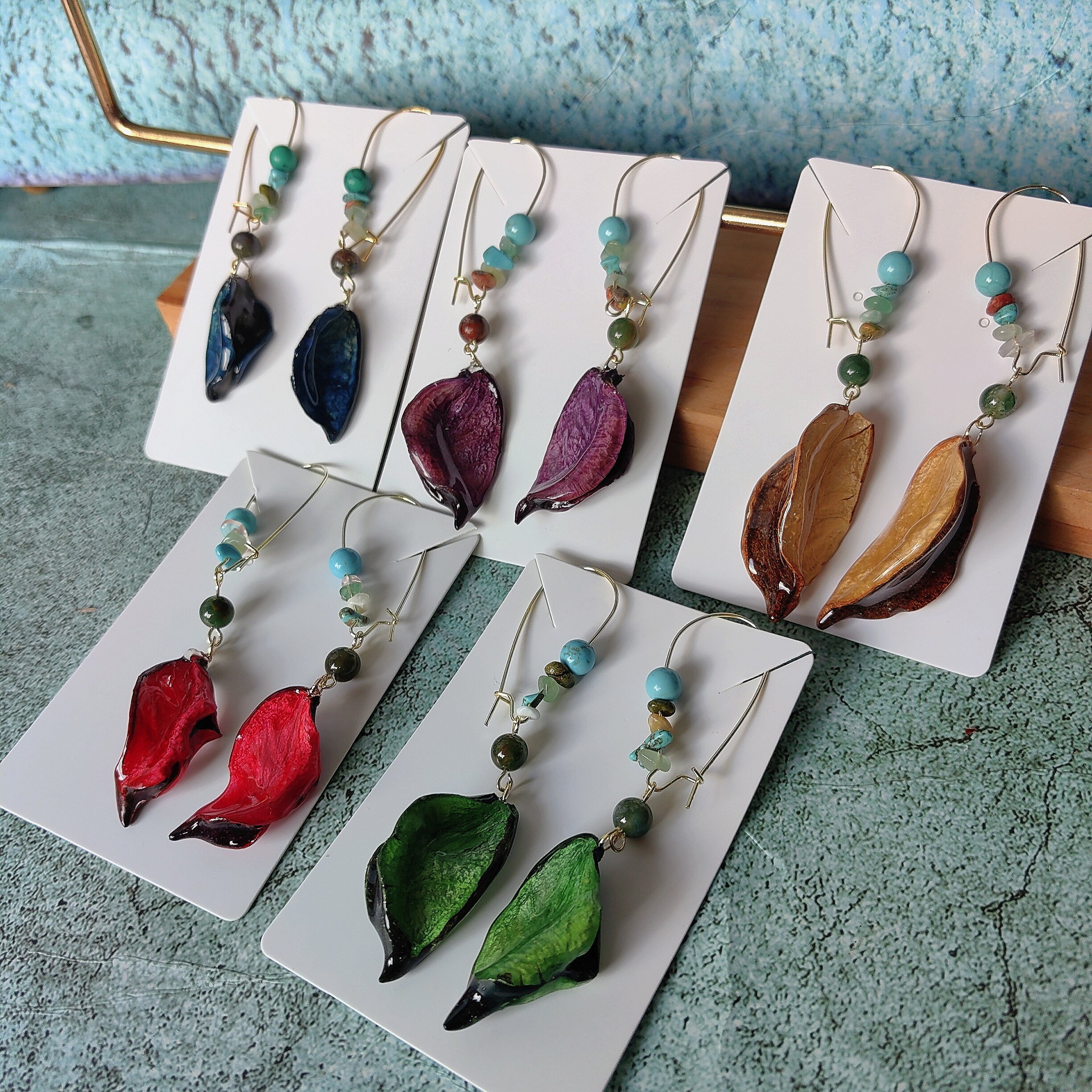 Оригинальные серьги из бирюзового индийского агата, резиновая оболочка, сушеные фрукты, французский стиль, нишевые серьги, высококлассный стиль
