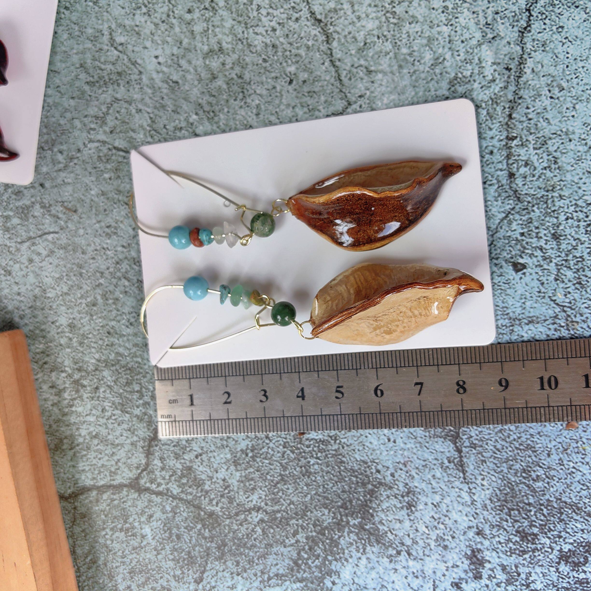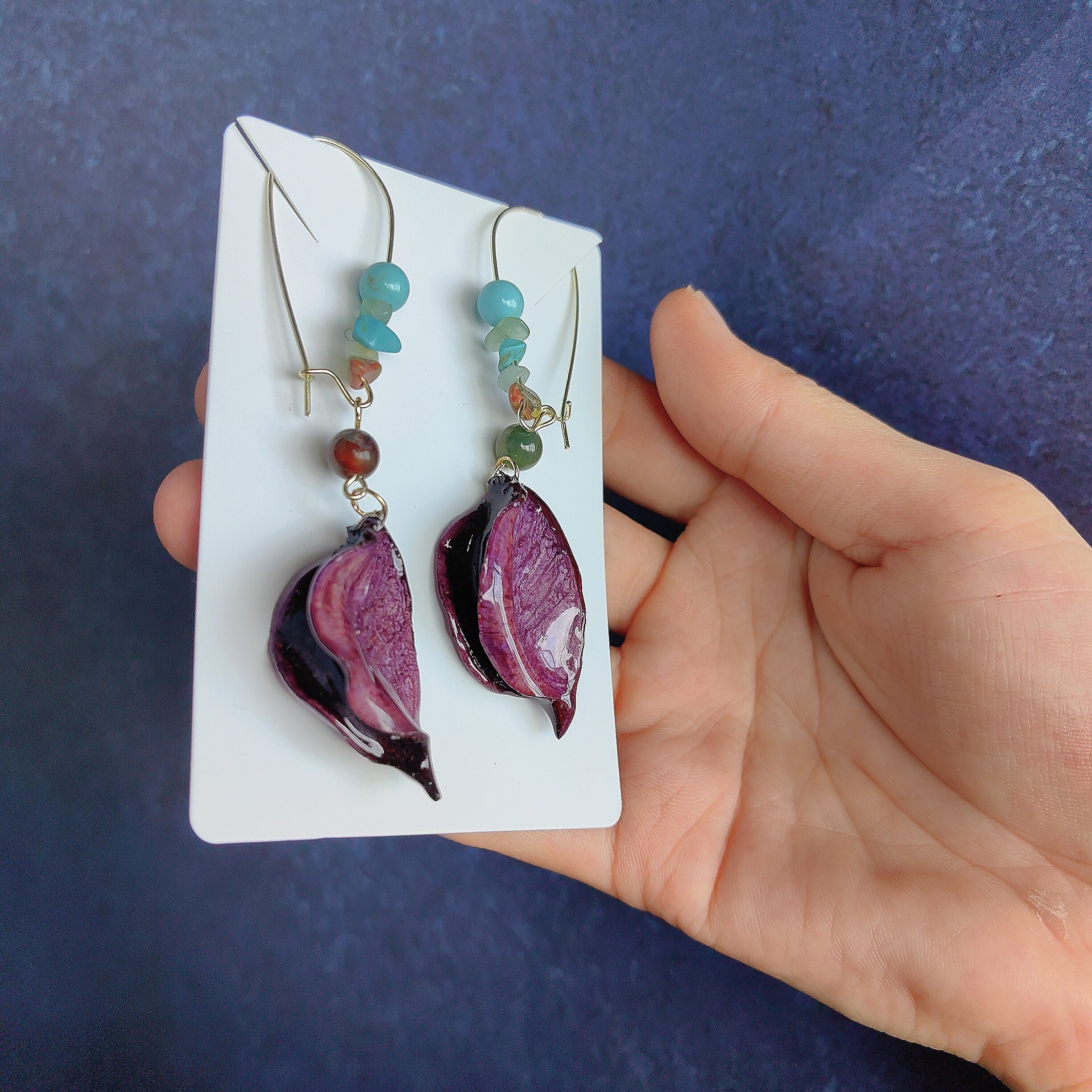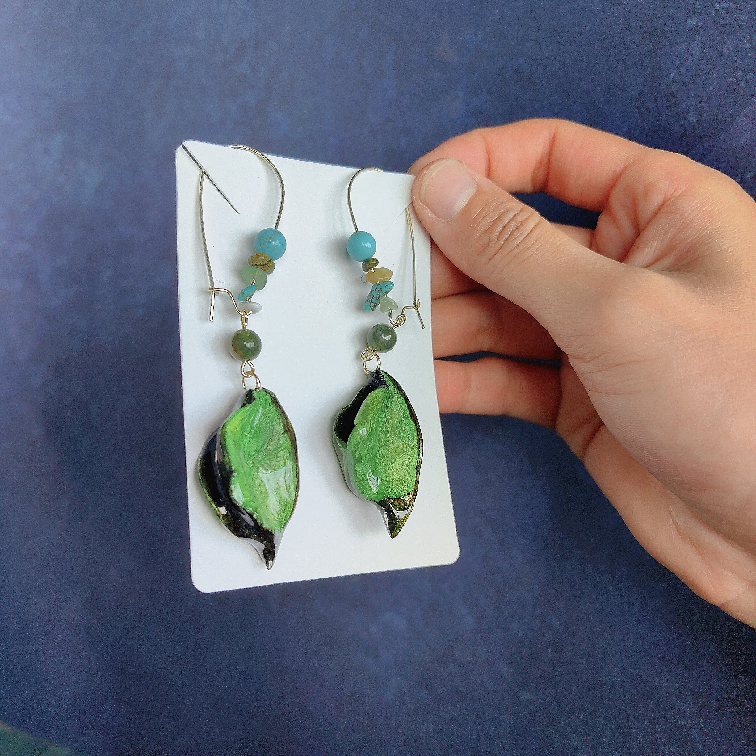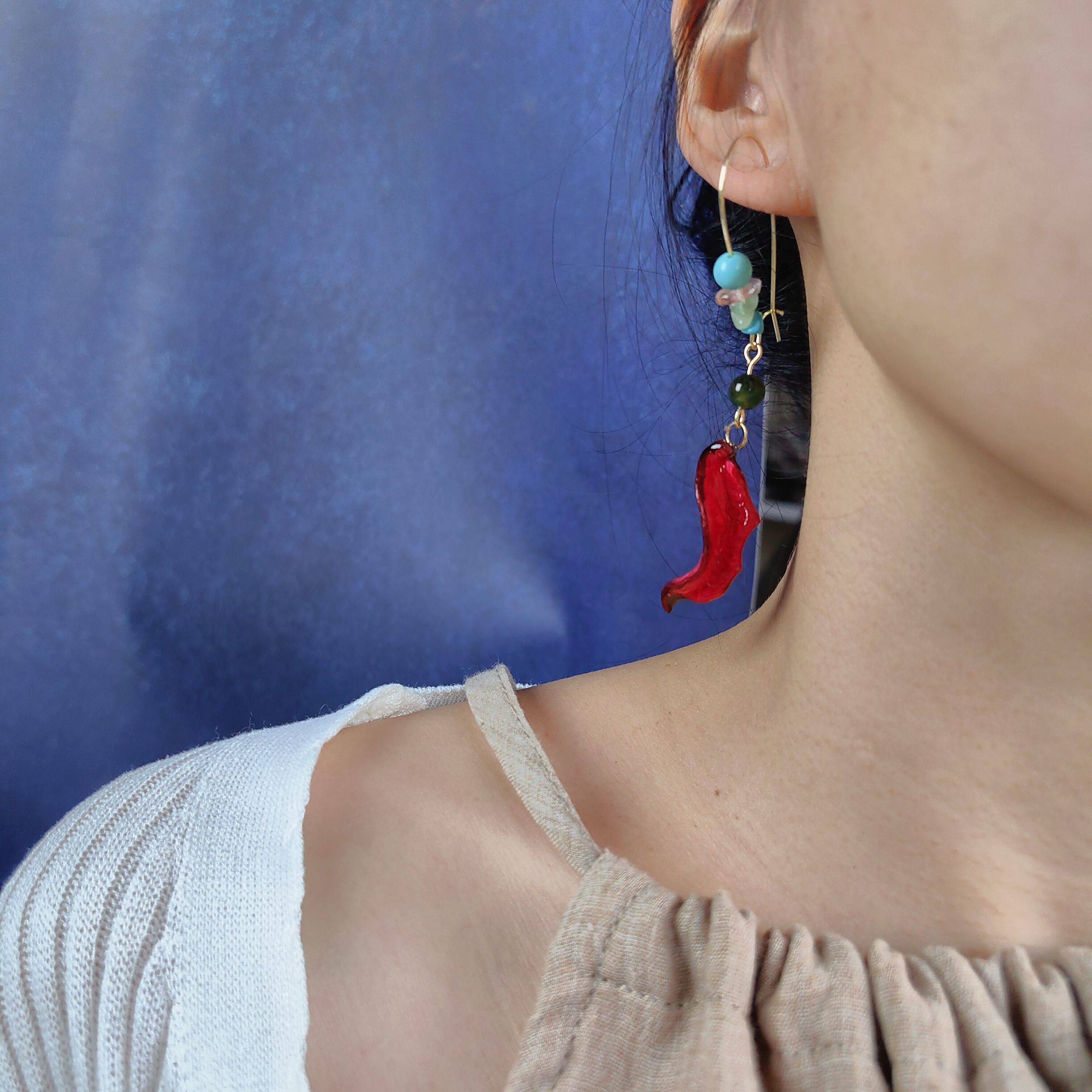 Оригинальные серьги из бирюзового индийского агата, резиновая оболочка, сушеные фрукты, французский стиль, нишевые серьги, высококлассный стиль