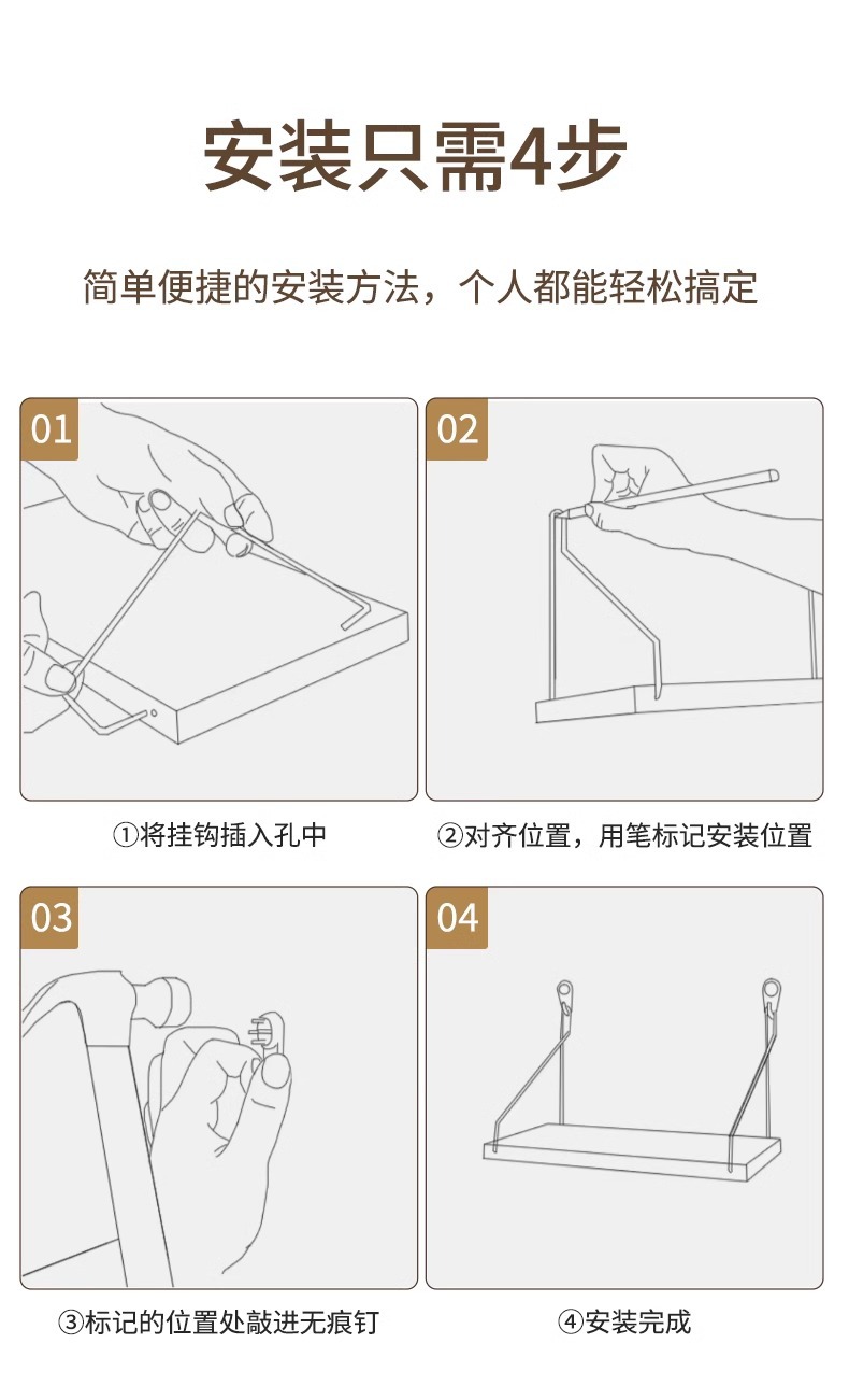 ![]() | Walnut color 40x15cm comes with traceless nails + adhesive | ¥8.5 / ≈ 103 ₽ | 9891613 | 5668320668083 | |