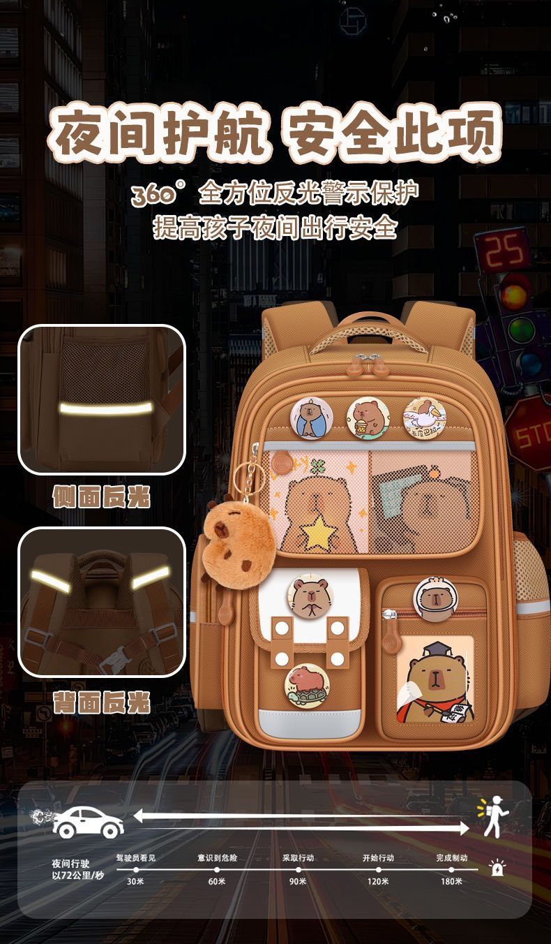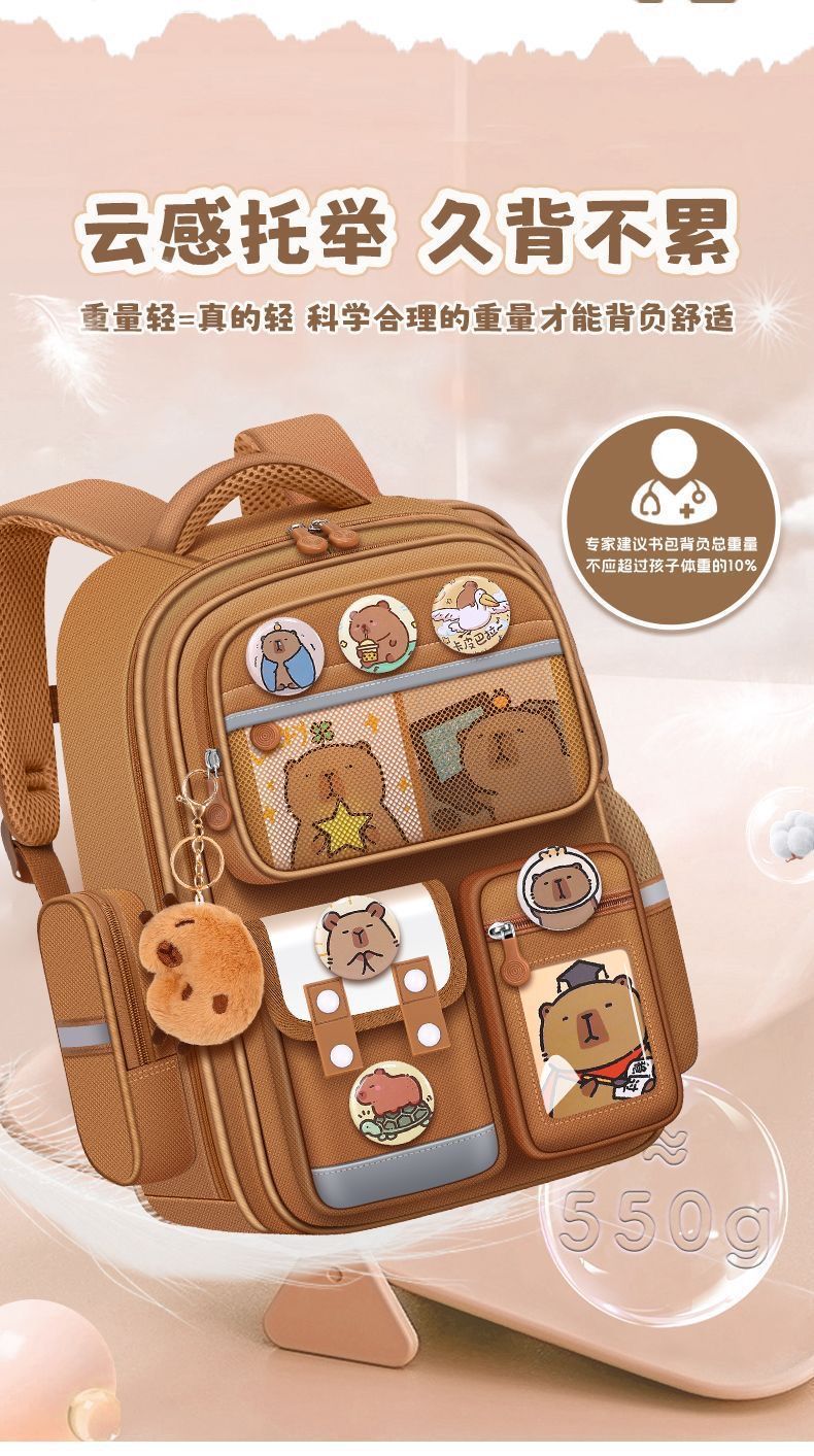 Новый рюкзак Капибала для учеников начальной школы, вместительный рюкзак для мальчиков и девочек 1-3 и 6 классов