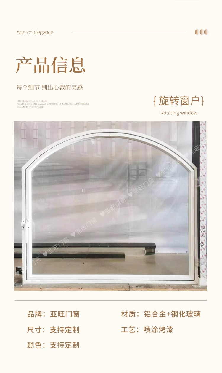 Алюминиевое окно с вращающейся осью, арочное окно с двойным открыванием, французское арочное стеклянное окно на заказ