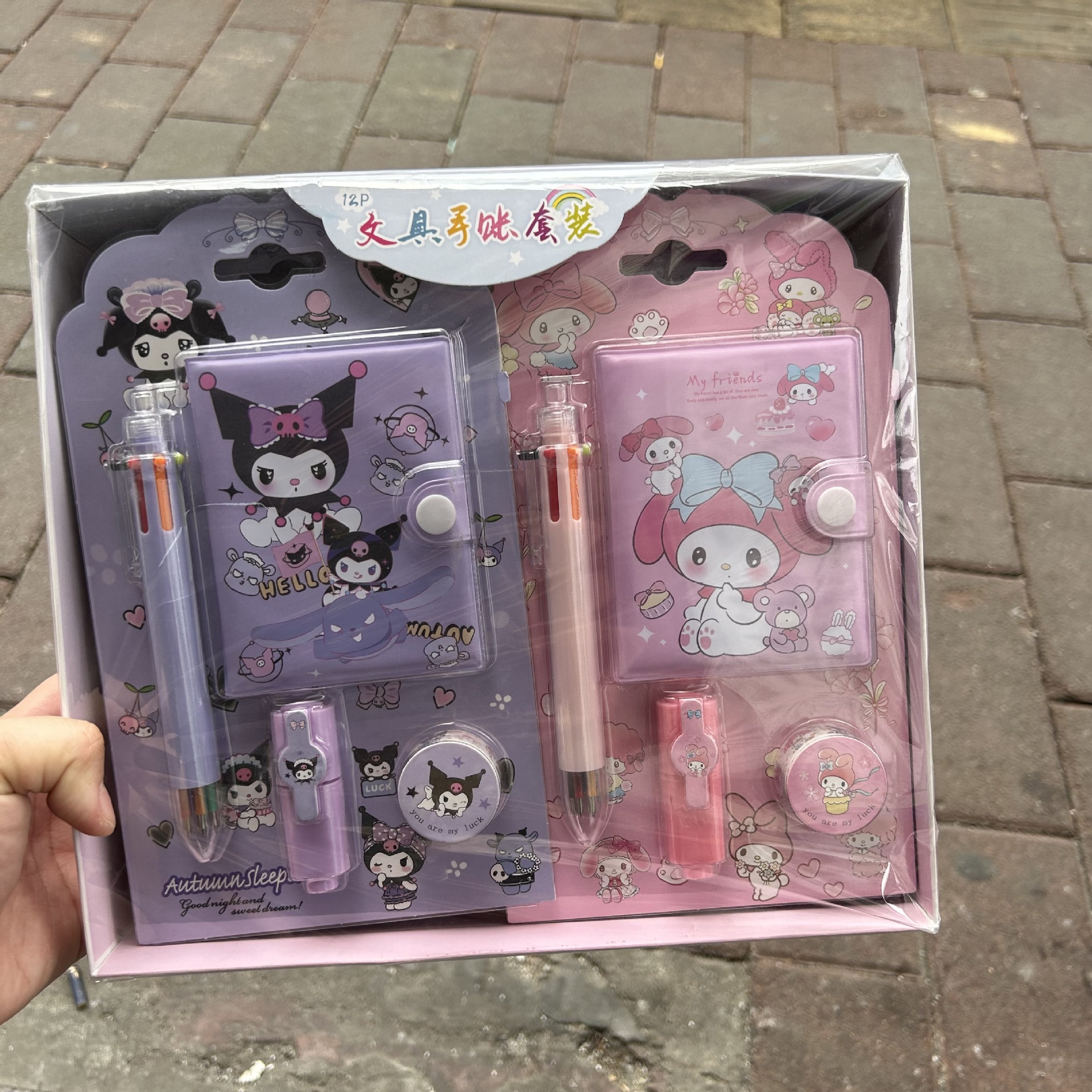 卡通三丽鸥多色笔套装带胶带手账套装礼盒 包装尺寸20*15cm 一盒12套一个图 一件192套 可以混图