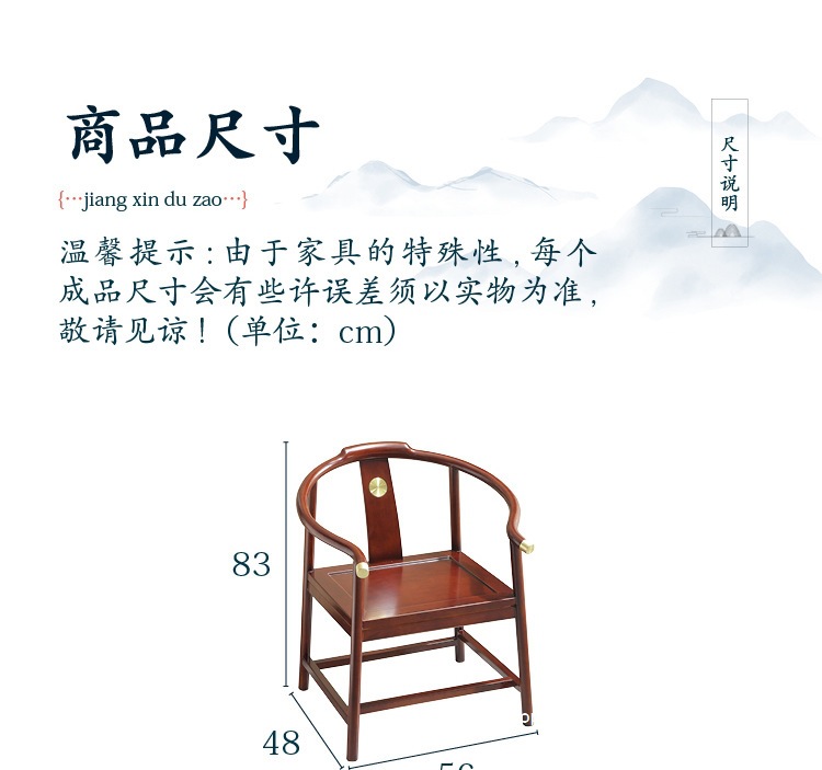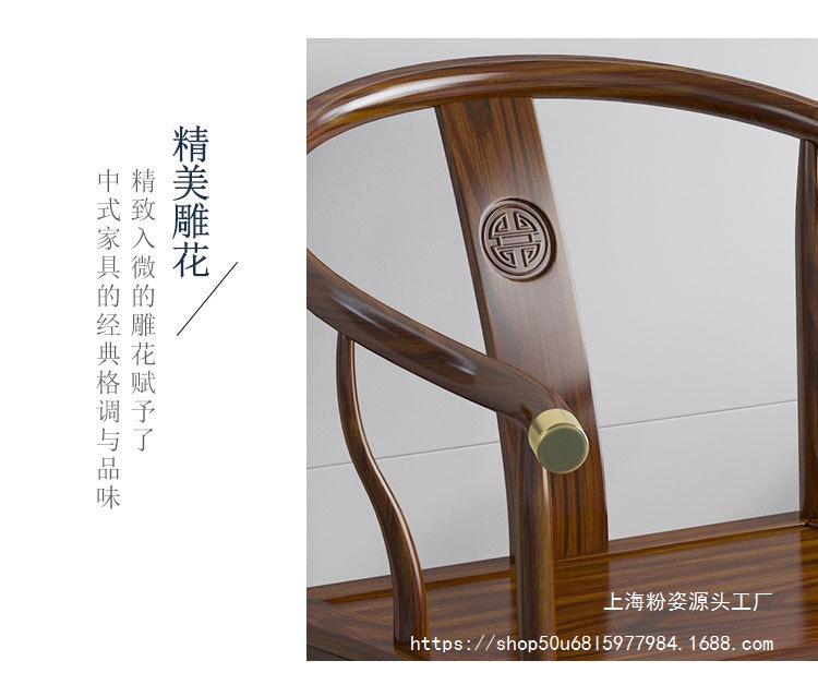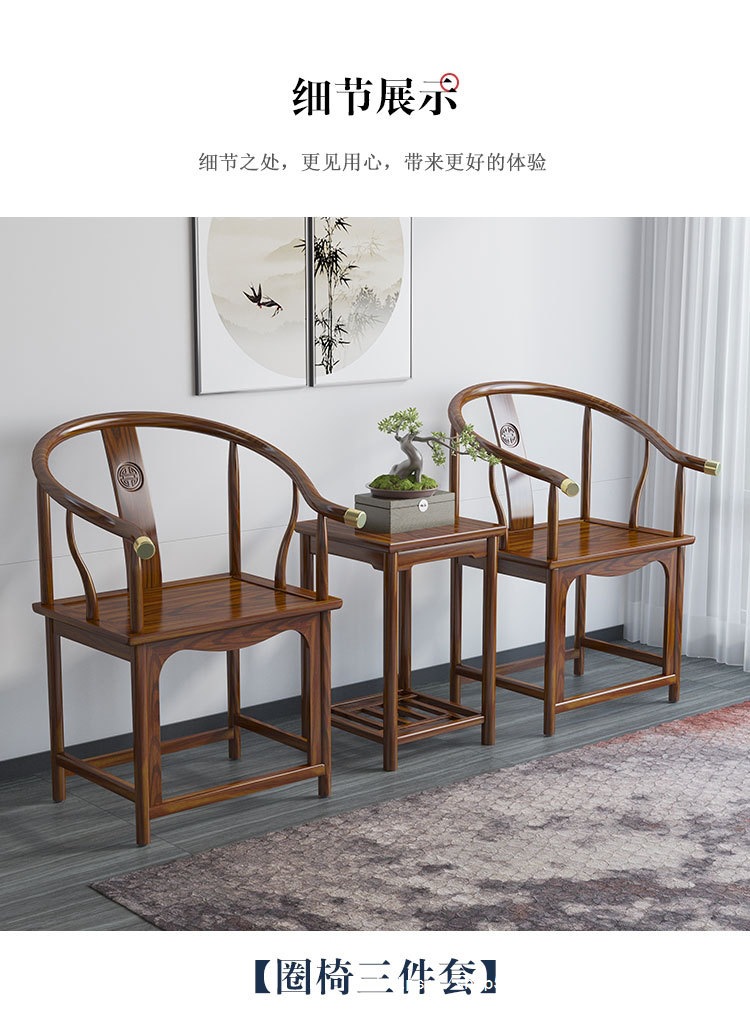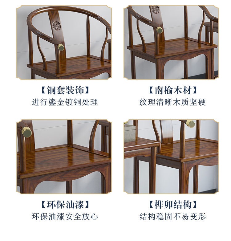 Стул из массива дерева с круглыми стульями, трехкомпонентный набор, мастер-стул, стул с официальной шляпой, новый китайский стиль, южный вяз, мастер-стул, чайный стул