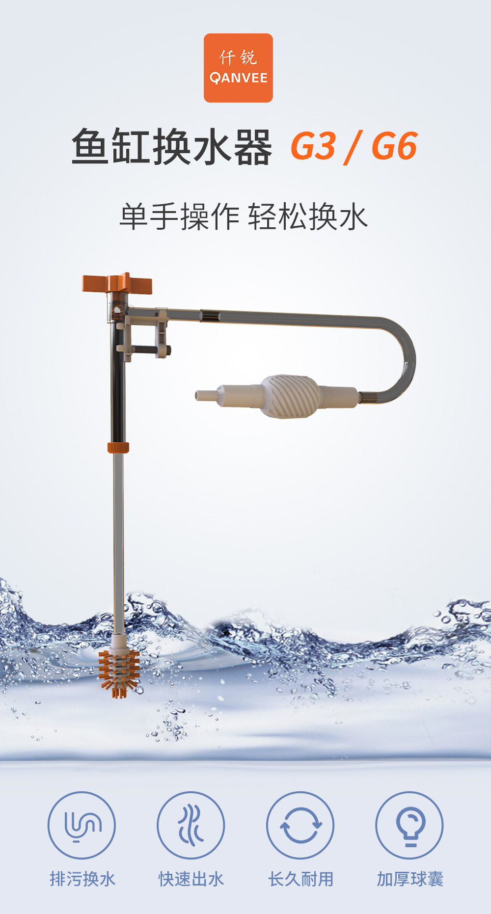Многофункциональный насос для замены воды в аквариуме QANVEE Qianrui, ручной инструмент для удаления отходов