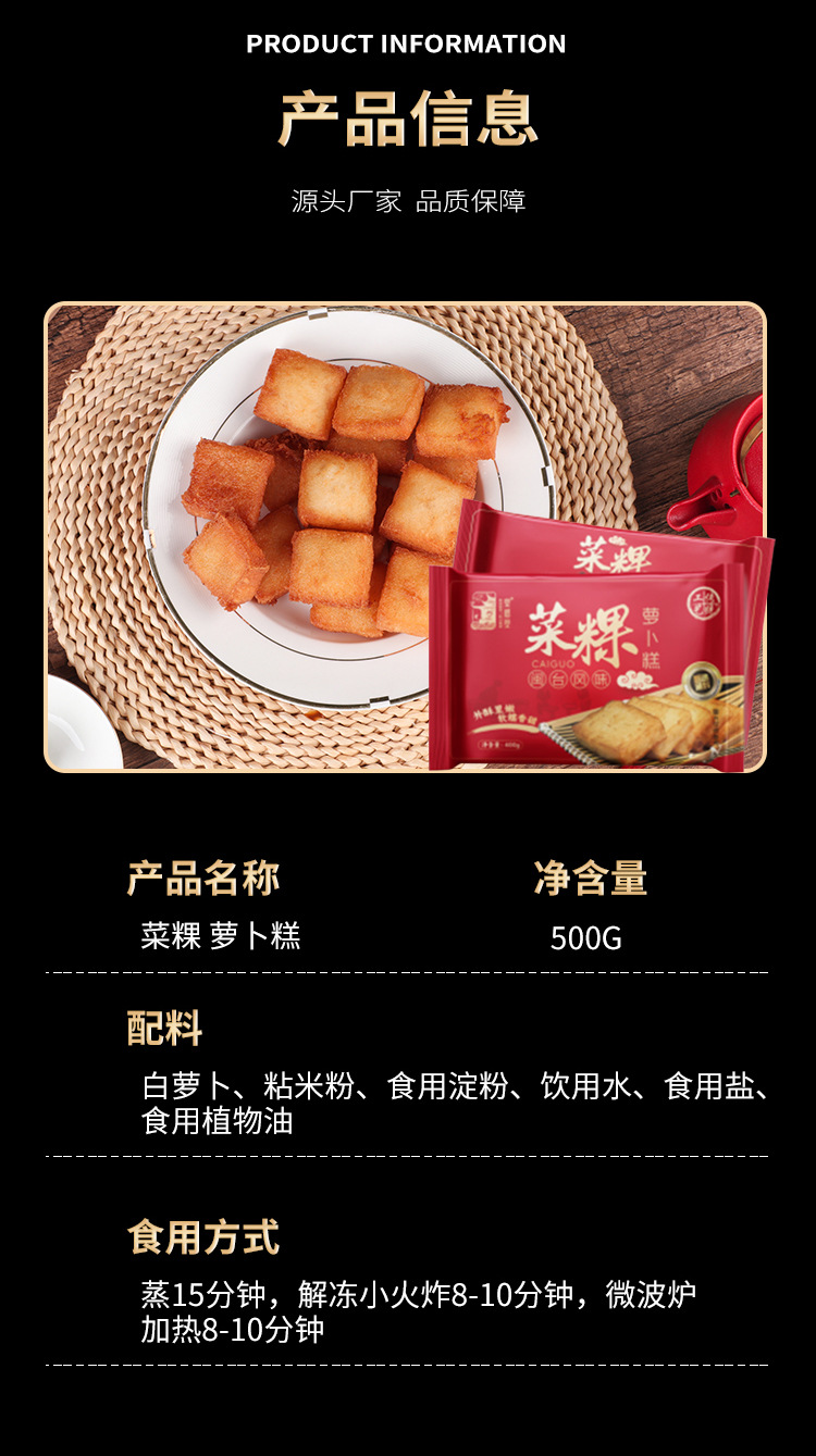 Сырьё и ингредиенты White radish, sticky rice flour, edible starch, drinking water, edible salt, edible vegetable oil