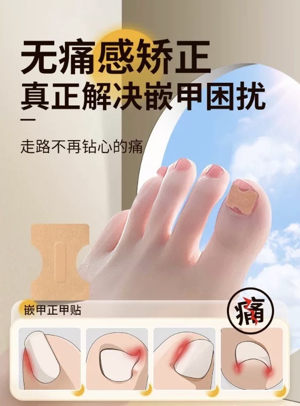 指甲矫正贴片能更好的粘黏在脚趾甲,能够代替传统的塞棉花垫入趾甲,能有效的进行物理矫正,能更加方便的携带与更换,建议早中晚更换。